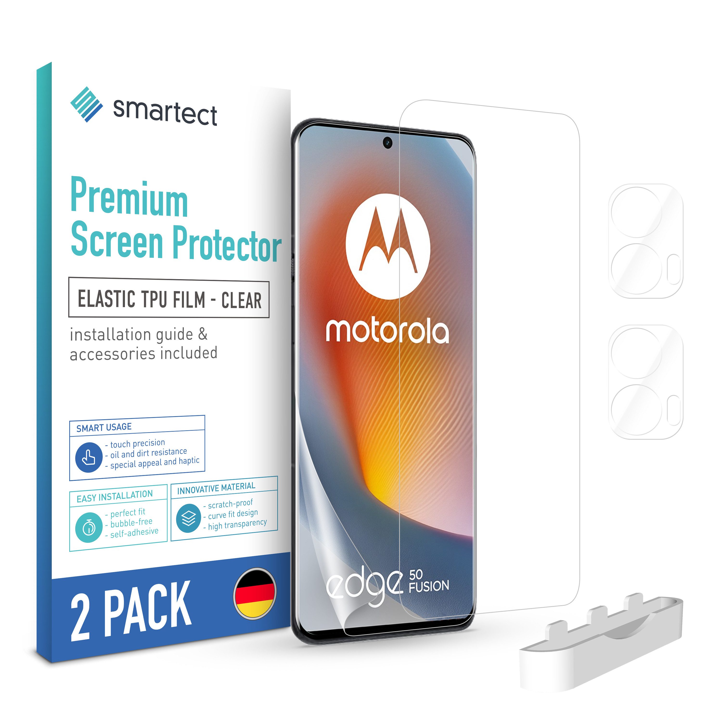 smartect Displayschutzfolie TPU Schutzfolie Klar für Motorola Edge 50 Fusion, Set, 2 Stück, (Display + Kamera) Panzerfolie Displayfolie