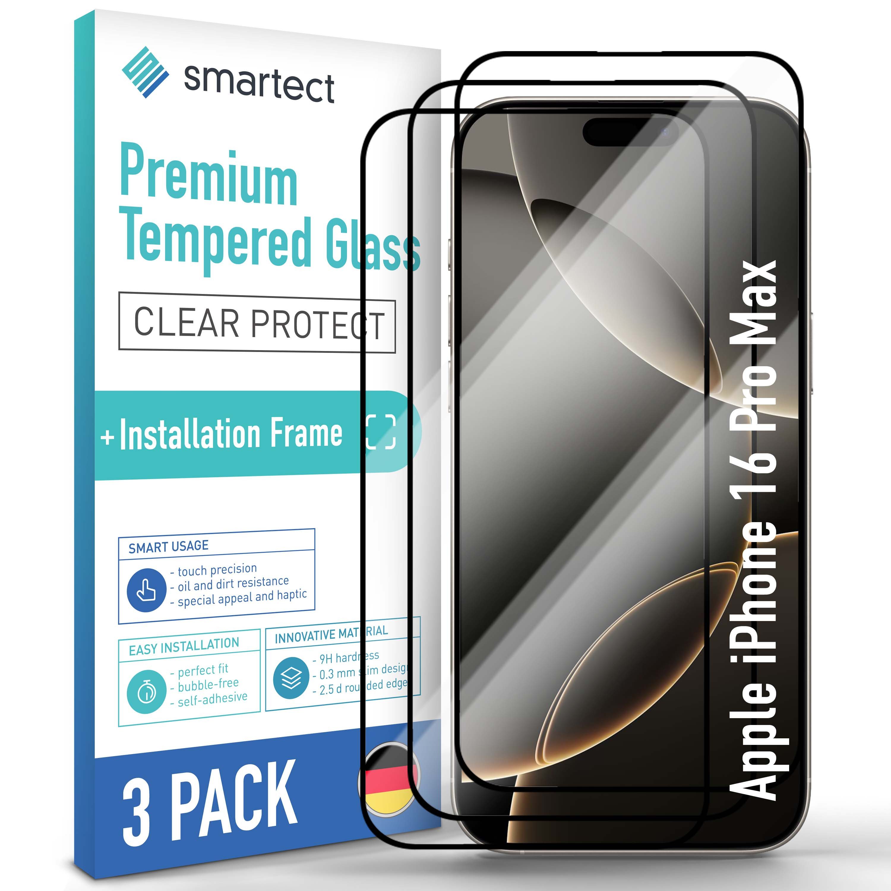 Maximale Passgenauigkeit: Die Glasfolie ist zu 100% kompatibel mit dem Produkt iPhone 16 Pro Max. Bitte beachten Sie, dass bei einem gerundeten Display lediglich die horizontale Fläche vom Handyschutzglas bedeckt wird