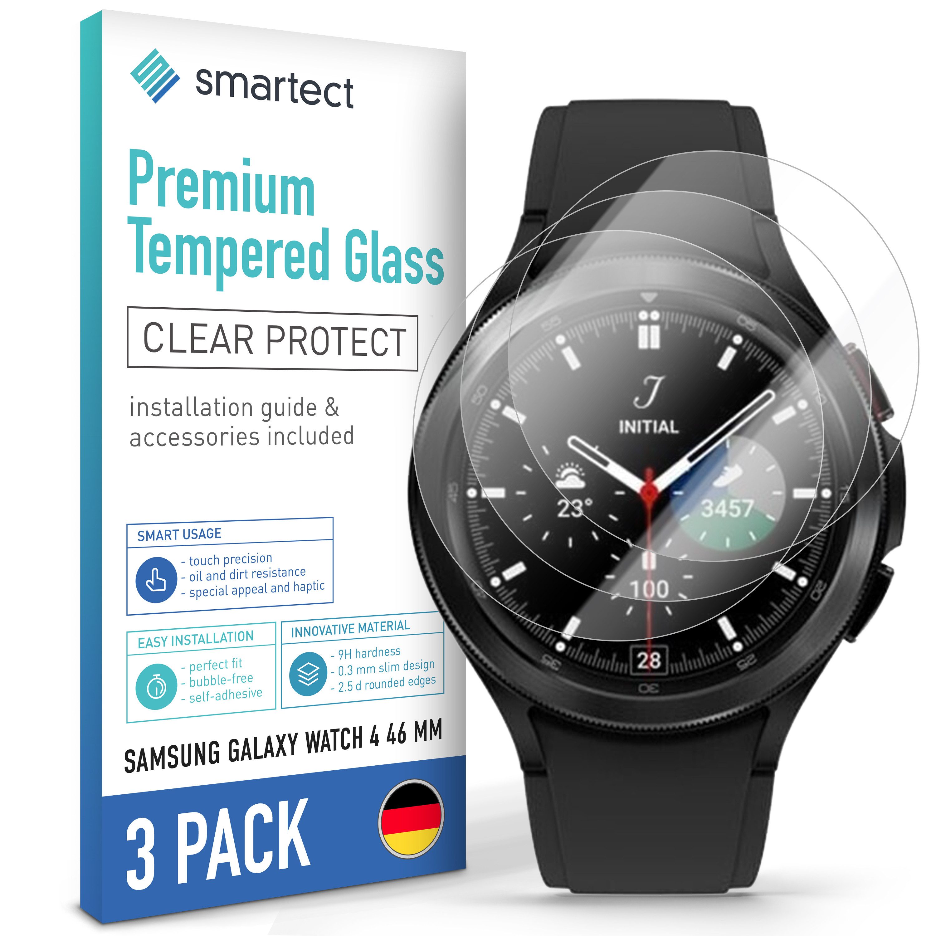 Maximale Passgenauigkeit: Die Glasfolie ist zu 100% kompatibel mit dem Produkt Samsung Galaxy Watch 4 46 mm. Bitte beachten Sie, dass bei einem gerundeten Display lediglich die horizontale Fläche vom Schutzglas bedeckt wird