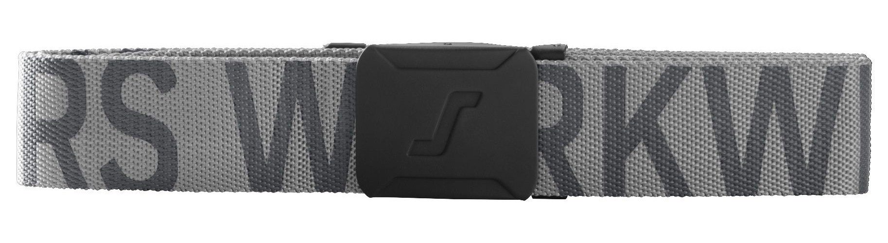 Stabiler Gürtel mit gummibeschichteter matter Metallschnalle für weicheren Griff und einen stylischen, modernen Ausdruck. Snickers Workwear Logo als Gürtelaufdruck.