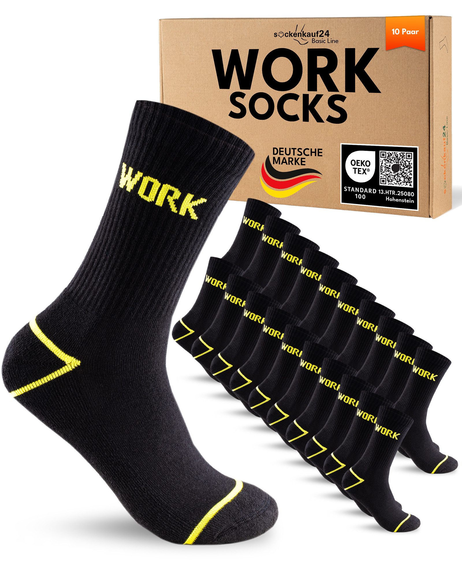 sockenkauf24 Arbeitssocken Herren 10 Paar WORK Socken Arbeitssocken (10-Paar) Verstärkter Fersen- und Zehenbereich, gepolsterte Sohle