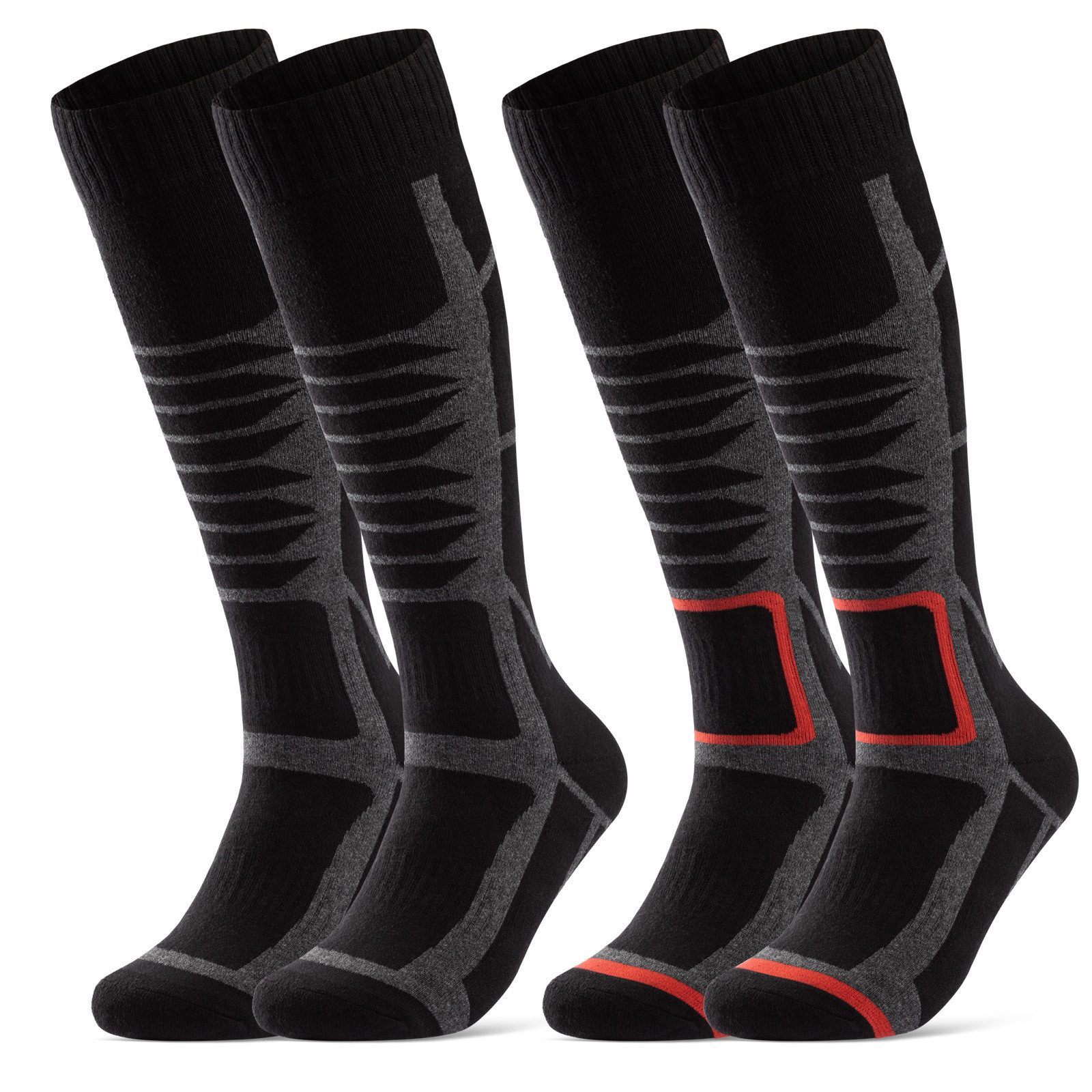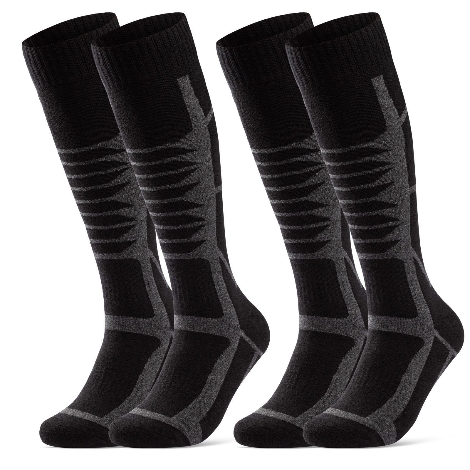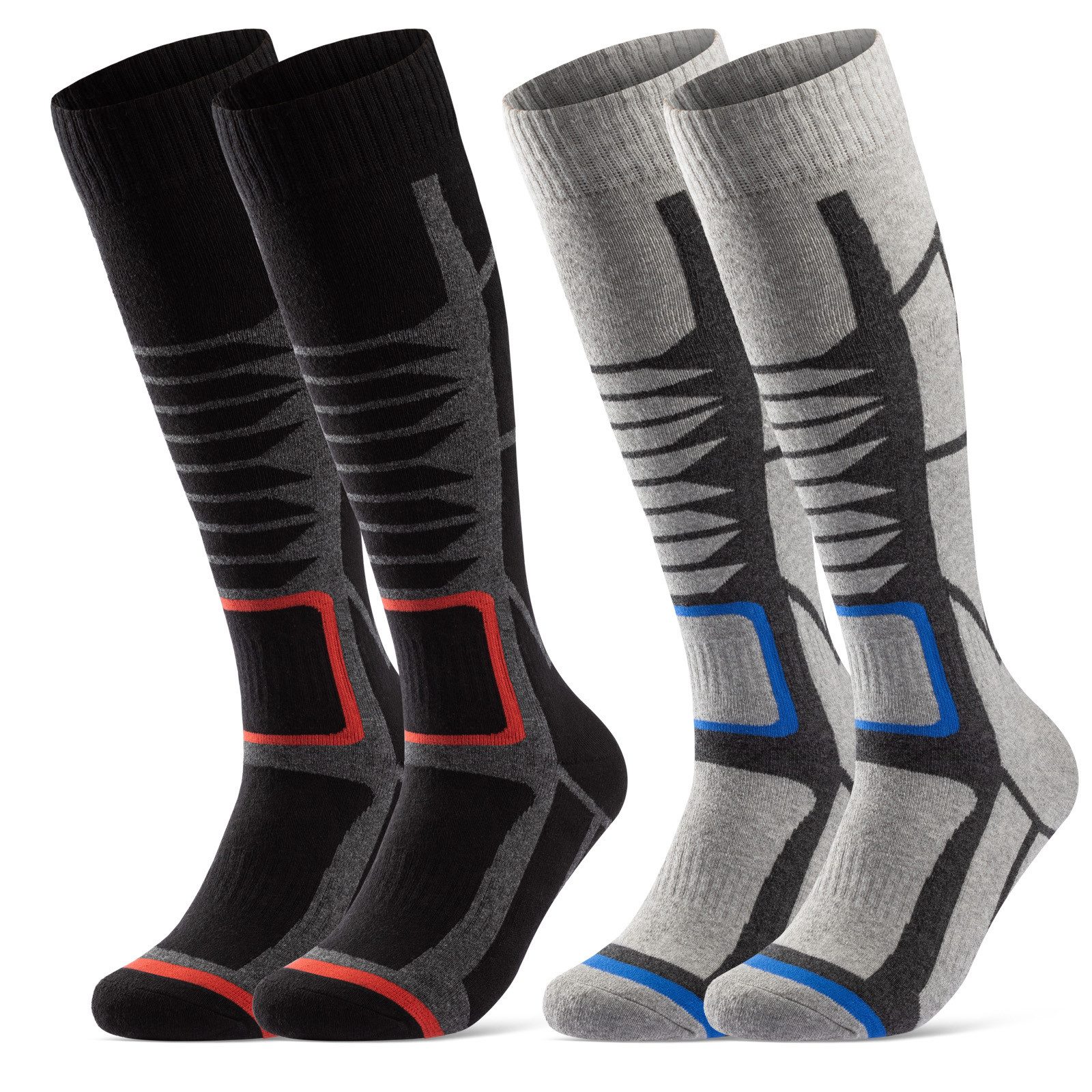 HOCHWERTIGE MATERIALIEN: Unsere Skisocken für Damen und Herren bieten eine optimale Materialzusammensetzung und wurden speziell für den Wintersport gefertigt. Sie versprechen ein angenehmes Tragegefühl und eine optimale Kombination aus Komfort und Funktionalität. Die extra weiche Polsterung an Schienbein, Knöchel, Zehen und Ferse sorgt für zusätzlichen Komfort und wirkt stoßdämpfend. Hergestellt aus 75% Baumwolle, 15% Polyamid, 8% Polyester und 2% Elasthan, garantieren sie höchste Qualität und Langlebigkeit.