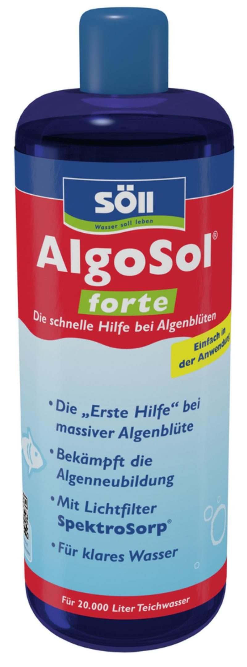 Die nachhaltige Unterdrückung von Algen-Massenentwicklungen im Teich ist eine wichtige Voraussetzung für ein biologisches Gleichgewicht im Gewässer. AlgoSol forte ist besonders hoch konzentriert und wirkt extraschnell gegen Algen.