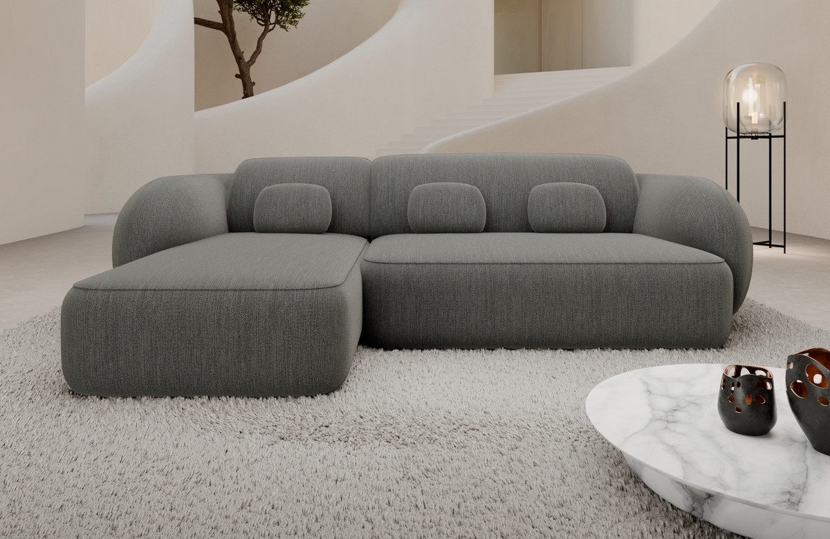 Das Ecksofa Altea in kompakter L‑Form verbindet stilbewusstes Design mit luxuriösem Sitzkomfort. Seine harmonische Silhouette, die kontinuierlich hohen Rückenlehnen (75cm) und die sanft abgerundeten Armlehnen vermitteln Geborgenheit – fast als würden sie Sie liebevoll umarmen. Die tiefe Sitzfläche von 65cm und die bodennahe Sitzhöhe von 42cm sorgen für ein entspanntes Lounge‑Feeling, perfekt zum Lesen, Fernsehen oder Relaxen.