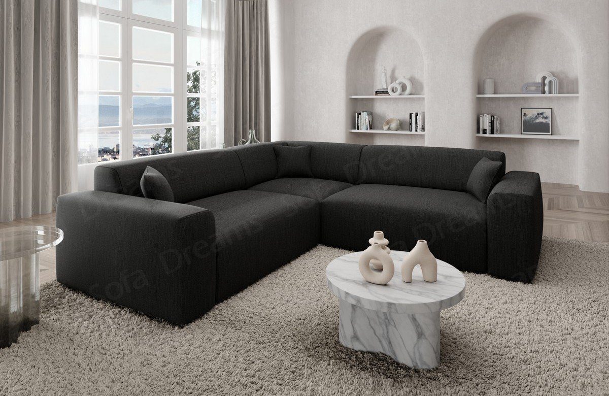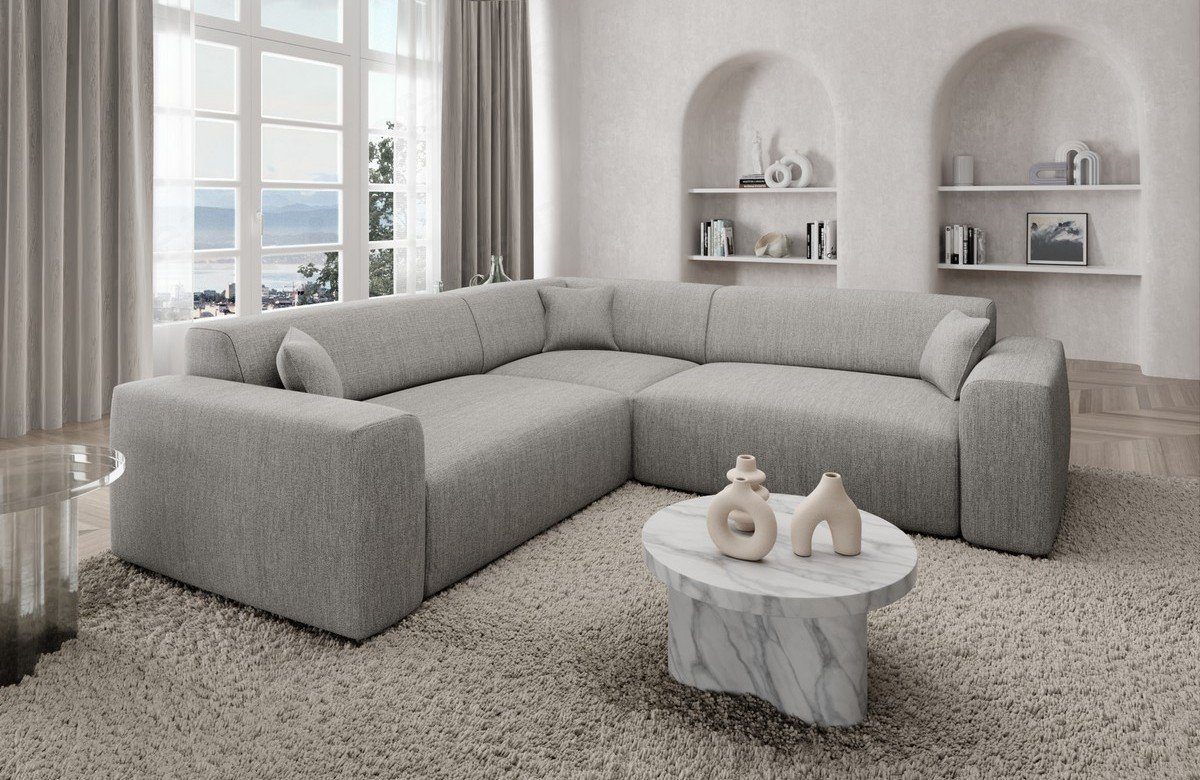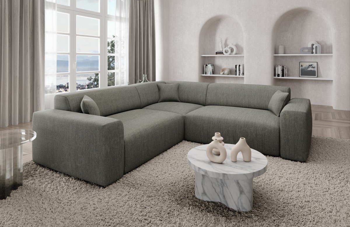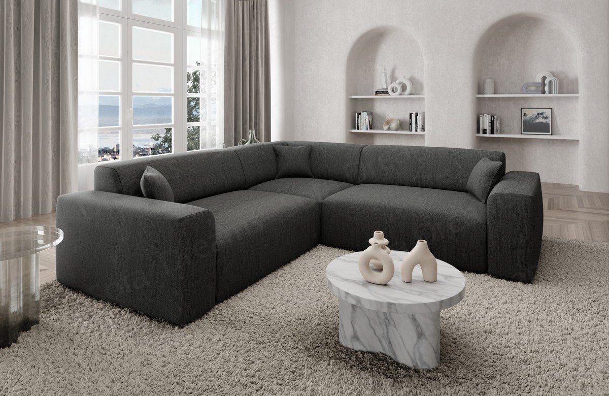 Sie suchen ein kleines, formschönes und praktisches Strukturstoff-Sofa? Dann schauen Sie sich doch das Modell Mallorca L Form an. Die geringen Abmaße ermöglichen es Ihnen, das Sofa vielseitig einsetzen zu können. Sie können sich Ihr Designersofa individuell nach Ihren Wünschen zusammenstellen. Die hochwertige Federung steigert nicht nur den Sitzkomfort, sondern beugt auch Verformungen vor, welche durch das Sitzen entstehen. Lernen Sie die Vorteile kennen, welche Sie durch Temperatur-unempfindliche Stoffe haben. Genießen Sie die Vorteile Temperatur unempfindlicher Stoffbezüge bei dieser Couch. Eine Stoffcouch hat den Vorteil, dass sie wenig empfindlich auf Temperaturschwankungen reagiert. Sie heizt sich im Sommer nicht unangenehm auf und kühlt im Winter nicht so stark ab. Für die Eckcouch steht Ihnen hier der topaktuelle Strukturstoff zur Verfügung.