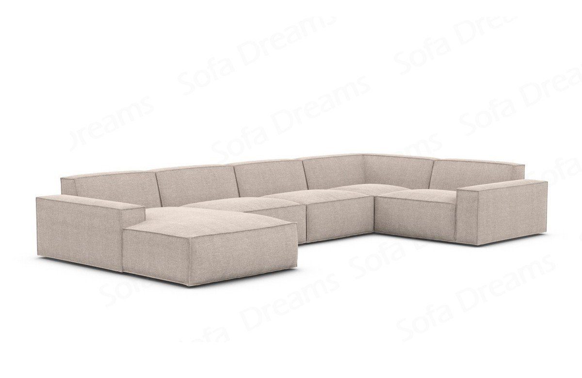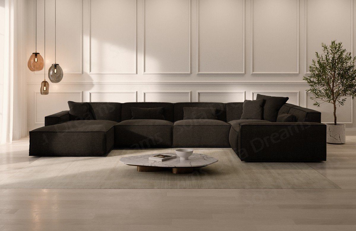 Die Strukturstoff Wohnlandschaft Formenta U Form wird zum Eyecatcher in Ihrem Wohnzimmer werden. Das moderne und elegante Design des Designer Stoffsofas lässt sich bequem mit vielen Einrichtungsgegenständen kombinieren. Die Stoffcouch ist vielseitig einsetzbar, sowohl im Wohnzimmer als auch in einem Gästezimmer. Bei der Gestaltung Ihres neuen Stoffsofas steht Ihnen hier ein Strukturstoff zur Auswahl. Zusätzlich bieten wir insgesamt 24 Farben zur individuellen Gestaltung der Couch an. Die hochwertige Federung steigert nicht nur den Sitzkomfort, sondern beugt auch Verformungen vor, welche durch das Sitzen entstehen. Lernen Sie die Vorteile kennen, welche Sie durch Temperatur-unempfindliche Stoffe haben. Das Sofa wird ohne Zierkissen ausgeliefert.