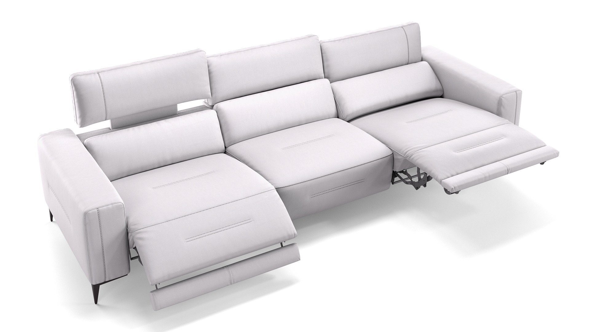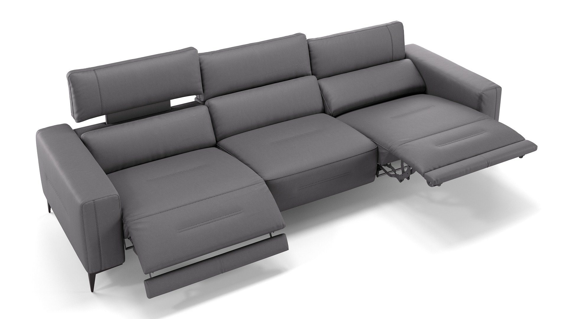Zurücklehnen und entspannen dank elektrischer FunktionDoch nicht nur das Äußere dieses Sofas macht von sich reden. Dank einer wertigen Polsterung auf ebenso qualitativer Schaumstoffpolsterung ist ein bequemes Sitzgefühl sicher. Per Knopfdruck lassen sich die drei Sitzeinheiten dann noch einmal getrennt voneinander verstellen. So kommt jeder Sitzende in den Genuss besonderer Annehmlichkeiten.