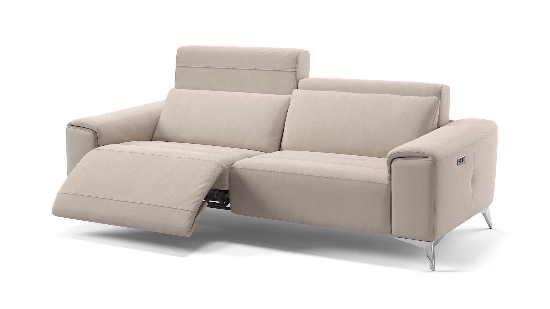 | Ausstattung | Elektrische Relaxfunktion per Knopfdruck an beiden Sitzen Elektrisch verstellbare Rückenlehnen Rückenhöhe um ca. 17cm erweiterbar Sofa in 2 Größen erhältlich 10 verschiedene Fußvarianten Italienisches Design wandfrei stellbar |