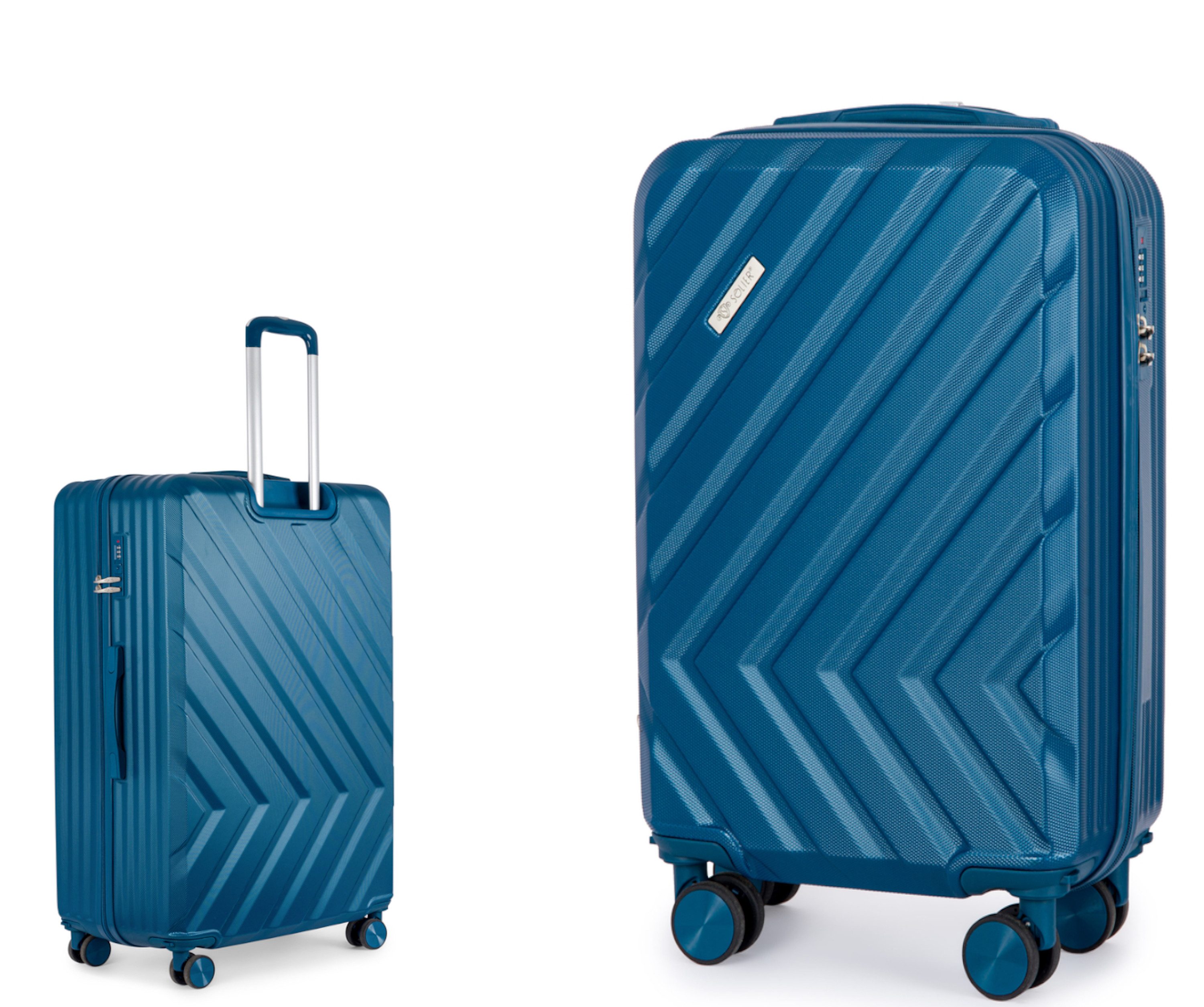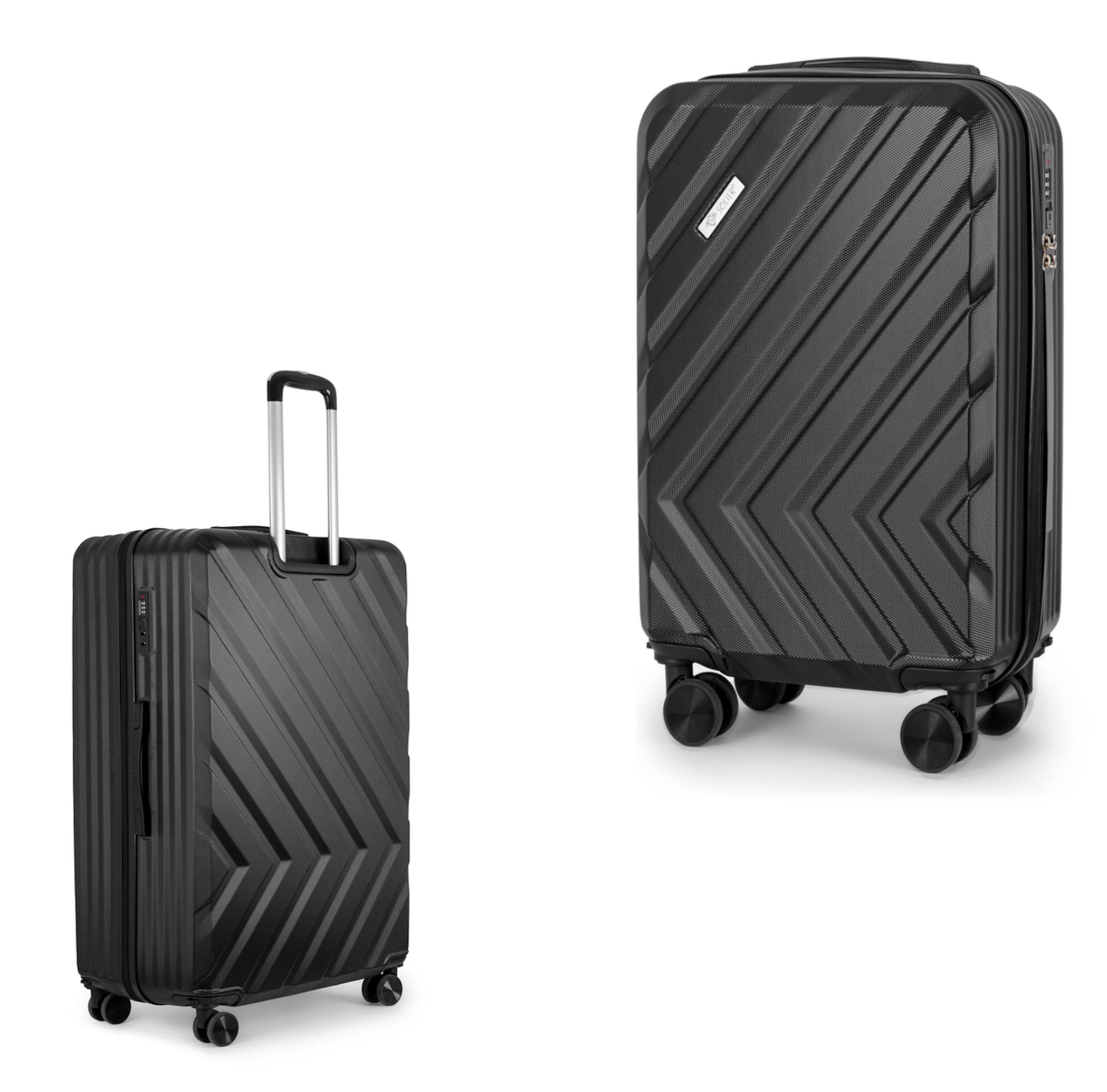 -4 Doppel-Rollen (360 Grad); -Innen: voll gefüttert mit RV-Tasche, -Gepäckgurte; -Arretierbares und versenkbares Trolleysystem; -integriertes Zahlenkombinationsschloss an jedem Koffer; -Material: ABS; -Tragegriffe oben und seitlich;