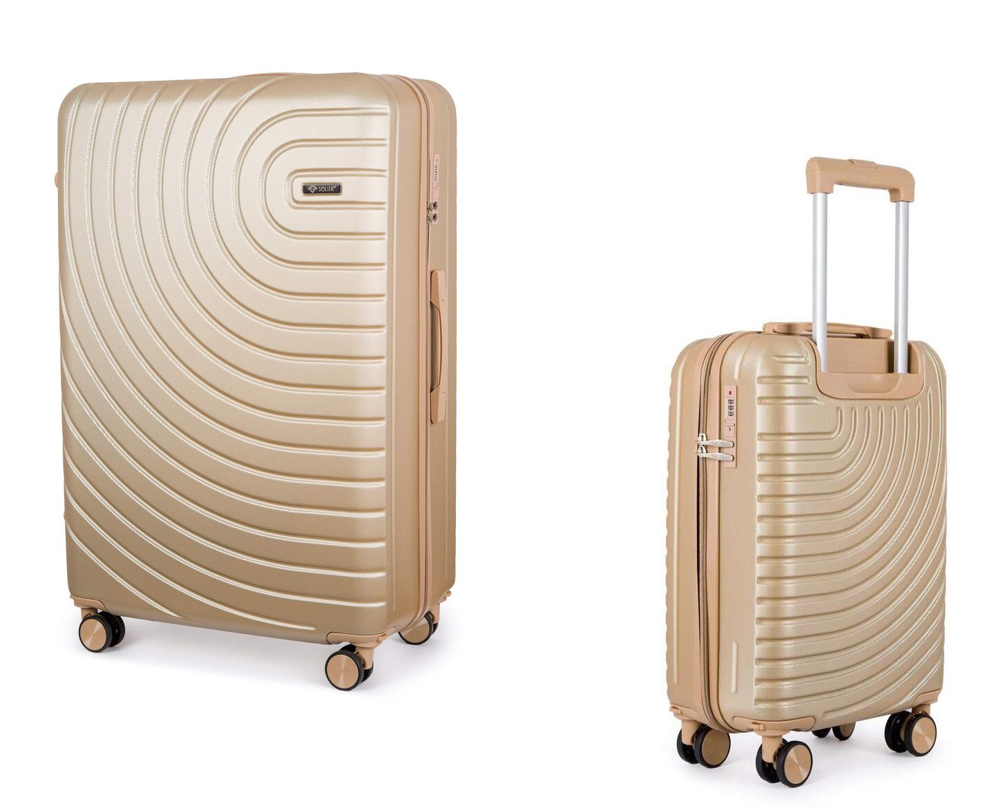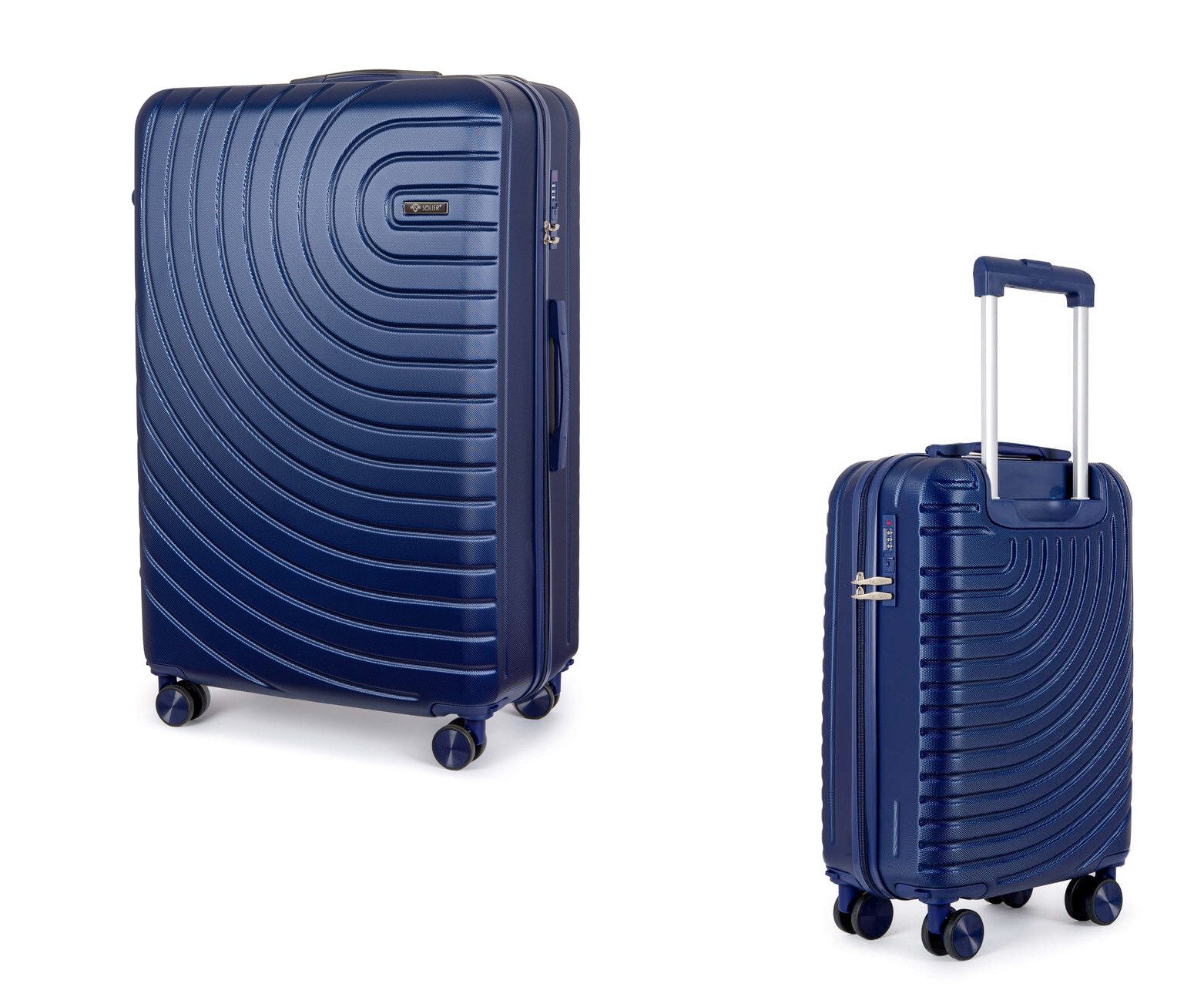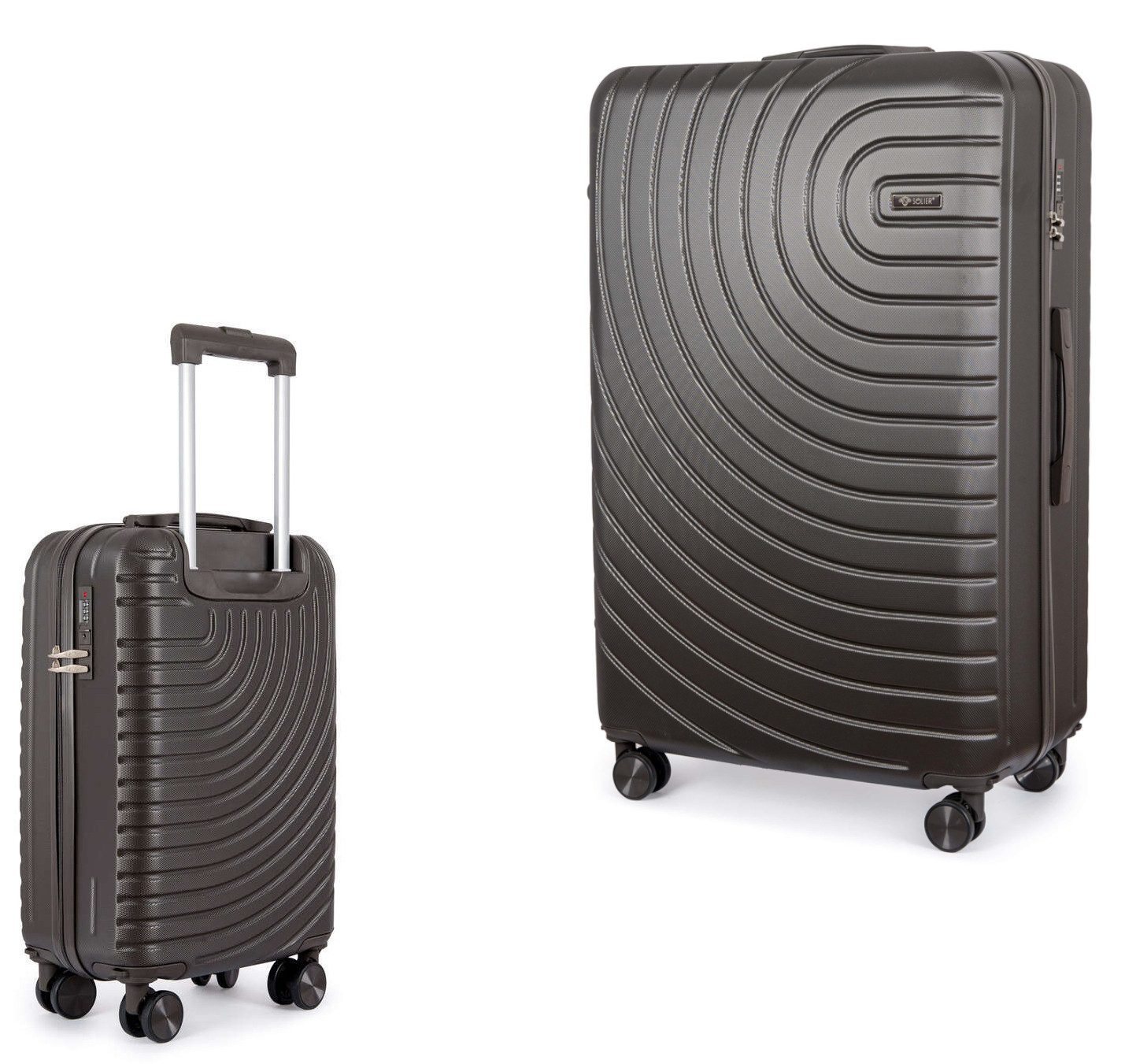 -4 Doppel-Rollen (360 Grad); -Innen: voll gefüttert mit RV-Tasche, -Gepäckgurte; -Arretierbares und versenkbares Trolleysystem; -integriertes Zahlenkombinationsschloss an jedem Koffer; -Material: ABS; -Tragegriffe oben und seitlich;