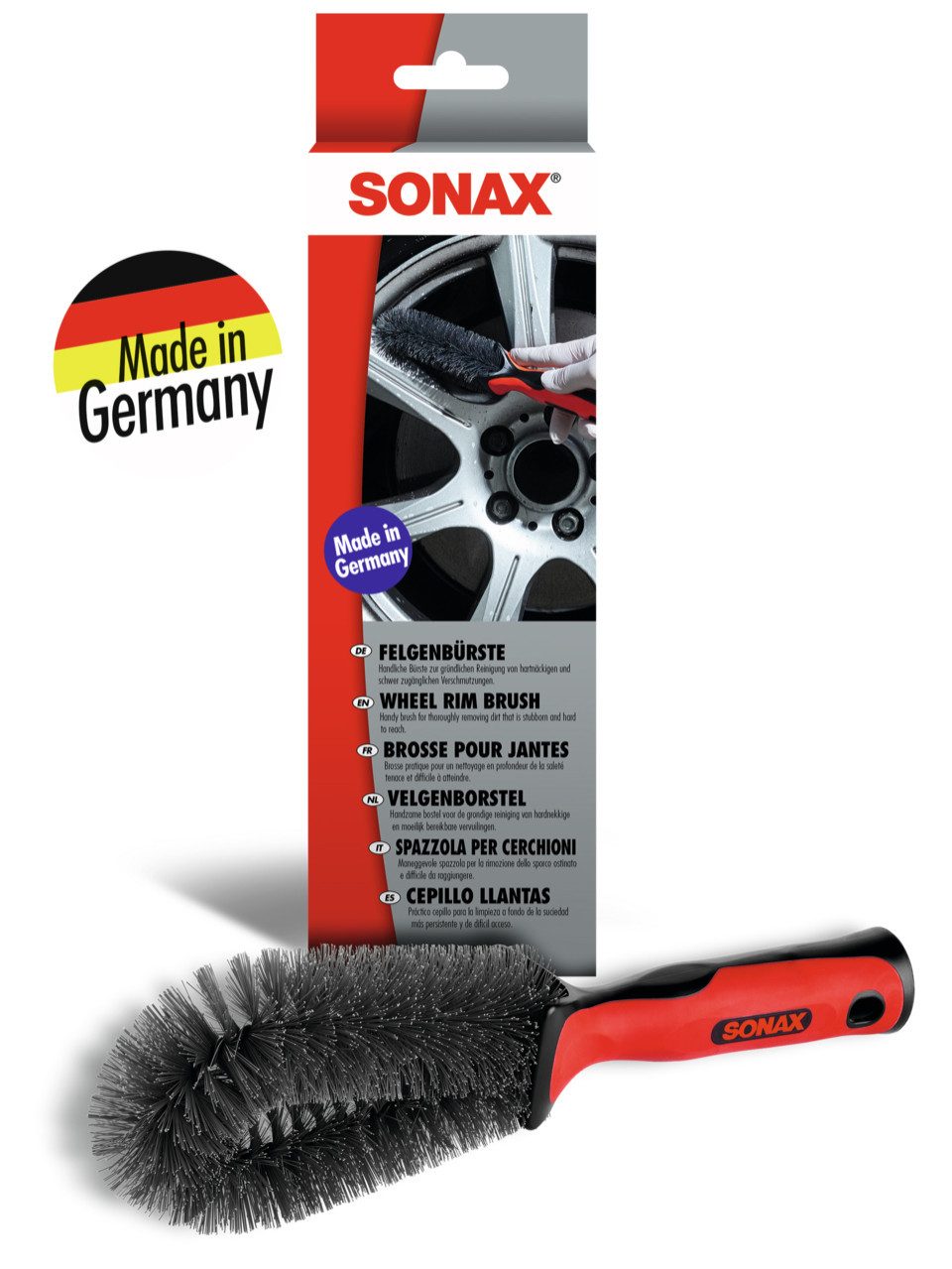 Die ergonomische Bürste zur Reinigung der Felgen von hartnäckigen und schwer zugänglichen Verschmutzungen. Durch die weichen Borsten und einen ummantelten Draht schont es die Felgenoberfläche. Die SONAX Felgenbürste ist geeignet für Stahl- und Alufelgen mit dem handlichen und rutschfesten Griff der für einen sicheren Halt sorgt.