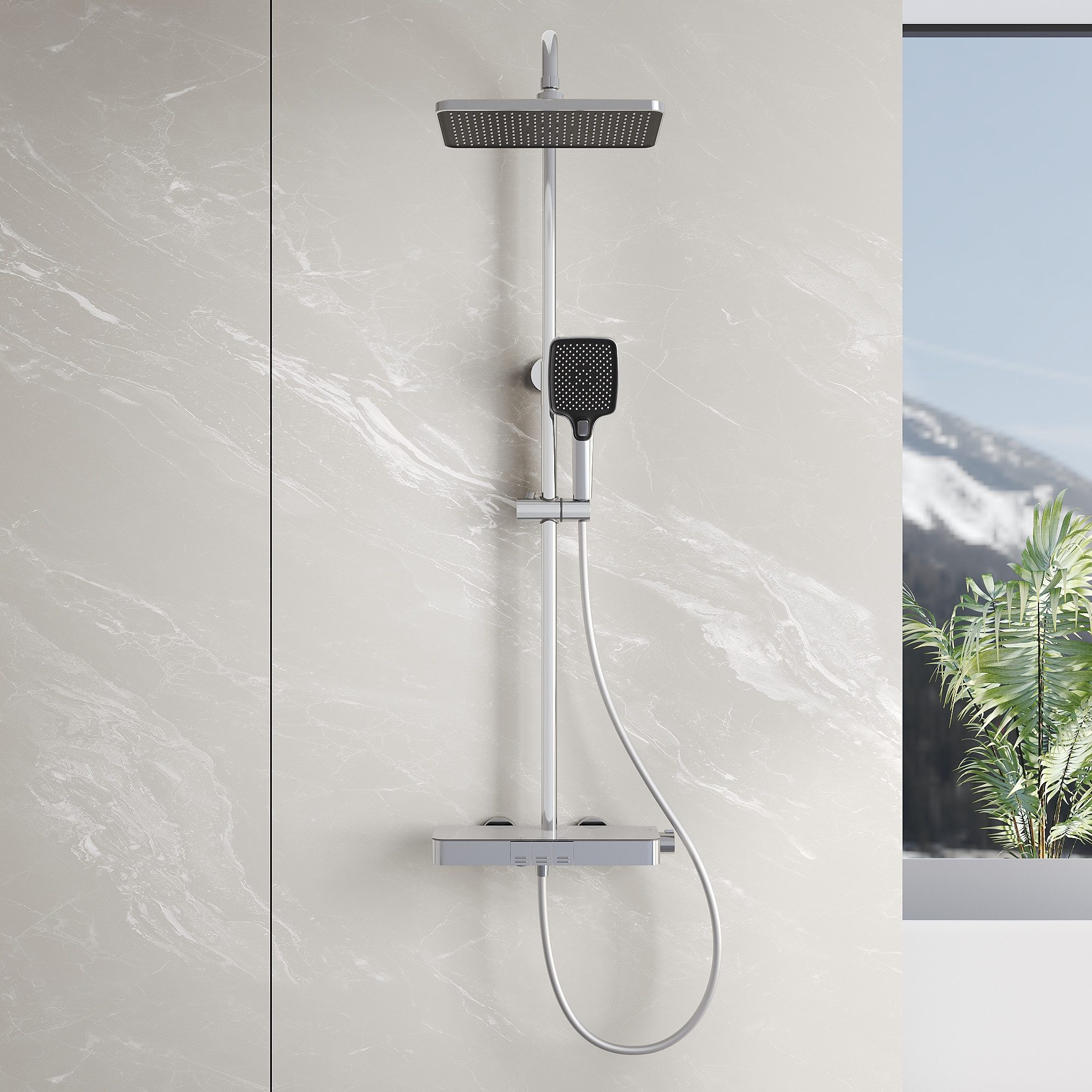 Dieses vielseitige und ausgewogene Thermostat-Armaturenset bietet durch seinen Thermostatventilkern ein stabiles und sicheres Duscherlebnis für Familien. Die höhenverstellbare Säule passt sich mühelos verschiedenen Badezimmergegebenheiten an und ist die ideale Wahl für alle, die Wert auf ein gutes Preis-Leistungs-Verhältnis und Praktikabilität legen.