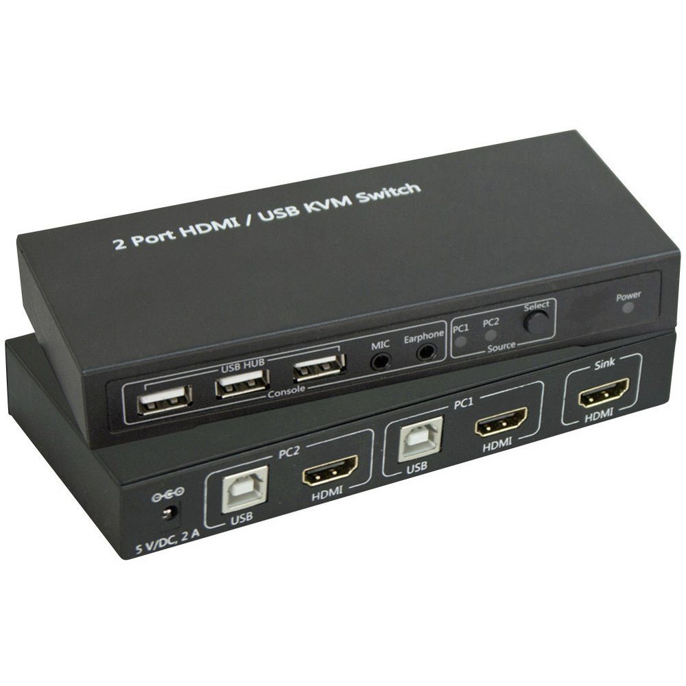 Mit dem 2x1 HDMI USB KVM-Switch können Sie zwei Computer miteinander vernetzen und die Signale auf einem HDMI-TV oder -Monitor ausgeben. Er unterstützt Auflösungen bis zu 3840x2160 Pixel, eine Videobandbreite bis zu 6 GB/s, Dolby True HD und DTS HD Master Audio. Außerdem verfügt der KVM-Switch über ein Metallgehäuse für bessere HF-Abschirmung und ermöglicht dem Benutzer, zwischen Geräten über Front Taster zwischen den Signalen zu wechseln.