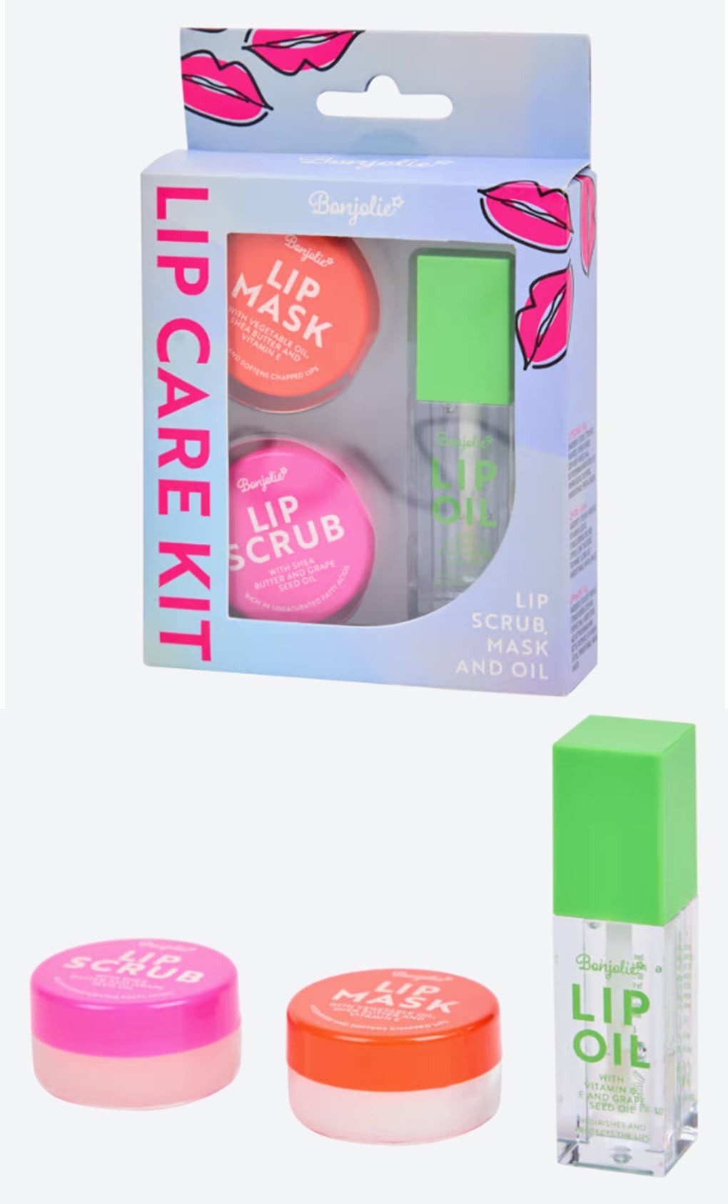 Lippenpflege-Set 3tlg. • Set bestehend aus Lippenmaske, Lippenpeeling und Lippenöl • Mit pflegenden Inhaltsstoffen wie Sheabutter, Traubenkernöl, Pflanzenöl, Vitamin E und Vitamin C Dieses Lippenpflegeset mit Peeling, Maske und Öl hält die Lippen geschmeidig und versorgt sie mit Feuchtigkeit. Ideal als zusätzliche Pflege bei Trockenheit, Kälte oder Sonne. Perfekt für weiche, samtige Lippen!