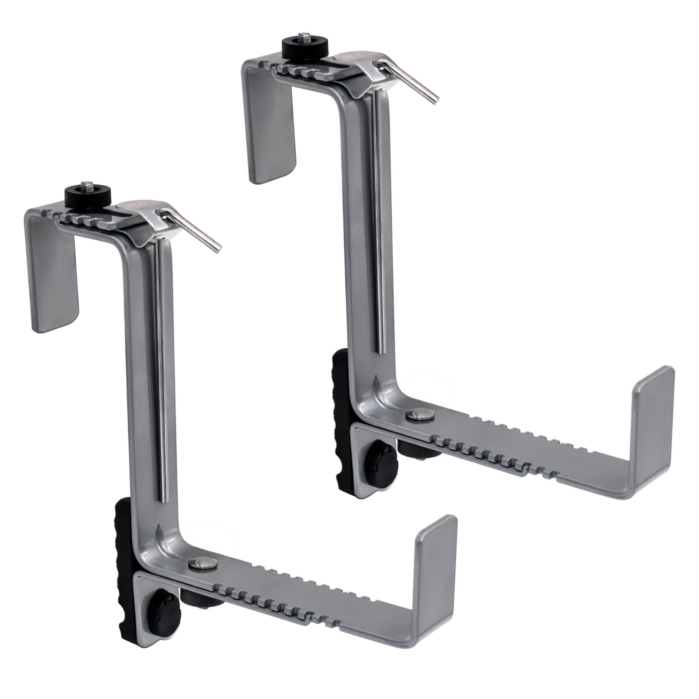 2er Set Blumenkastenhalter aus Metall in hellgrau individuell einstellbar für eckige Geländer belastbar bis ca. 50 kg