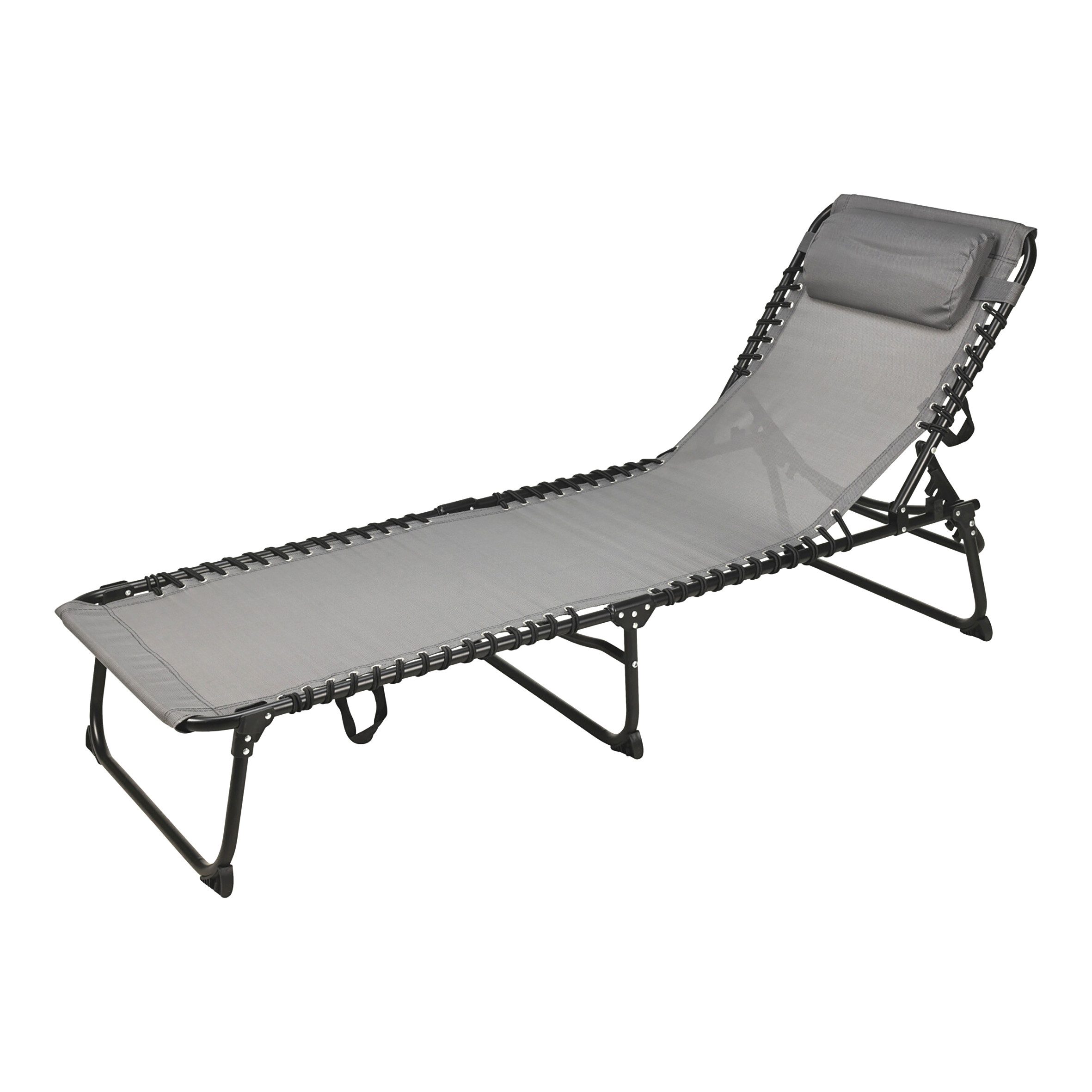 XL Relax Klappliege mit Kopfkissen hell grau - 190 x 60 cm - Sonnenliege mit 5-fach verstellbarer Lehne
