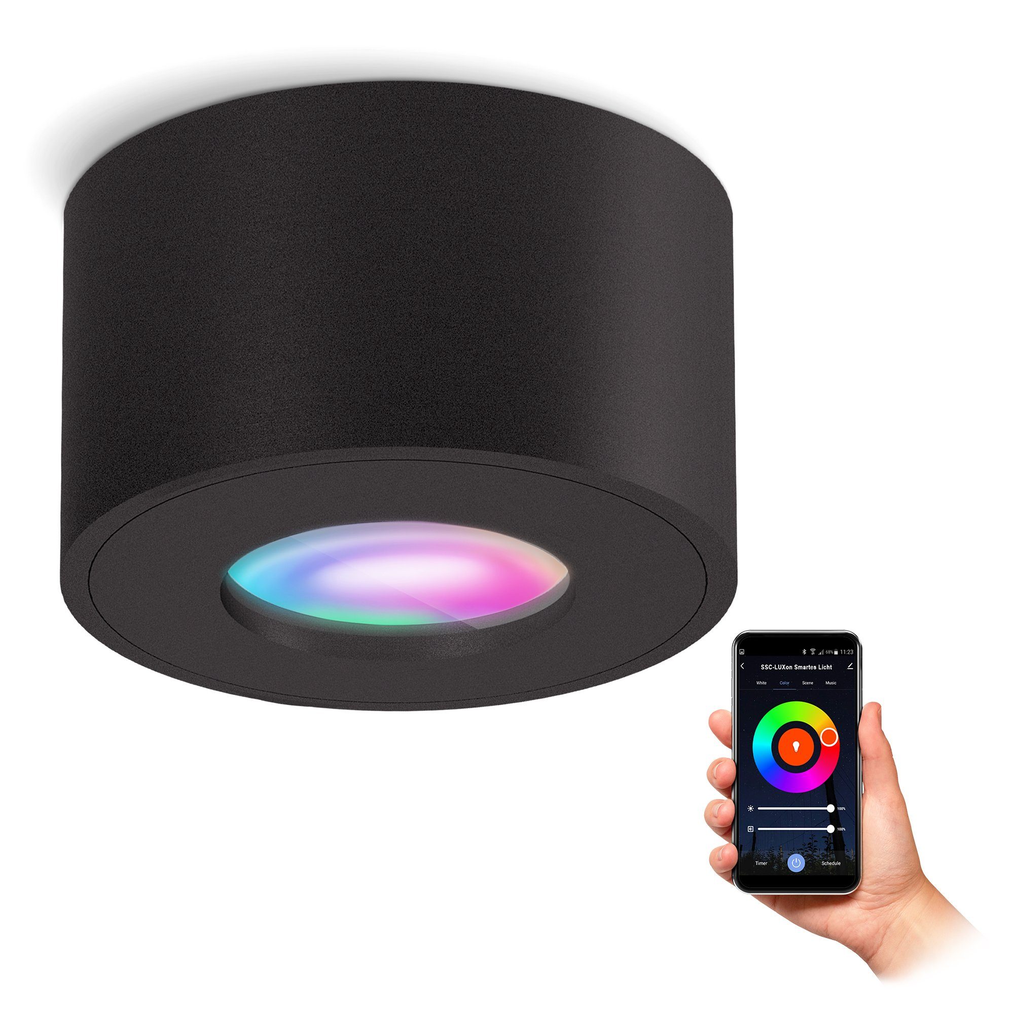 Installieren Sie den flachen Aufputzstrahler einfach in Ihrem Zuhause. Bei ausreichendem WLAN Empfang (2,4 Ghz) lässt sich die Deckenleuchte im Nu über die kostenlose Smartphone App „Smart Life – Smart Living“ koppeln und steuern. Auch Sprachassistenten können genutzt werden. Der Aufbauspot ist kompatibel mit Amazon Alexa (ab 2. Gen Echo), Siri oder Google Home.