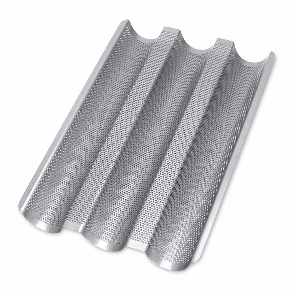 We love Baguettes. Verwandeln Sie Ihre Küche in eine französische Boulangerie: Auf dieses Baguette-Backblech passen drei Ihrer selbst gemachten Baguettes. Backen aus Liebe.