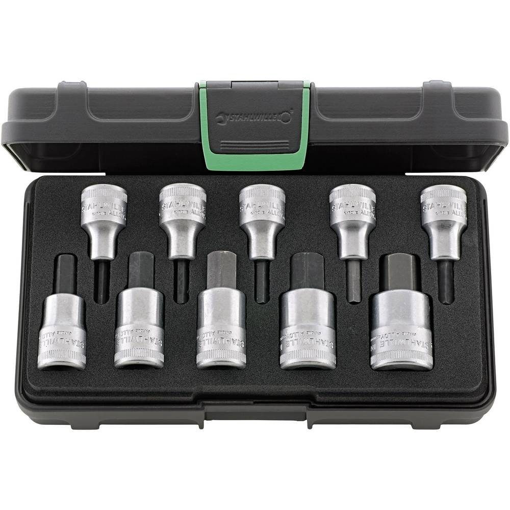 | Lieferumfang | Innen-Sechskant Steckschlüssel-Bit-Einsatz SW 4/5/6/7/8/10/12/14/17/19 mm · ABS-Kunststoffkasten. |