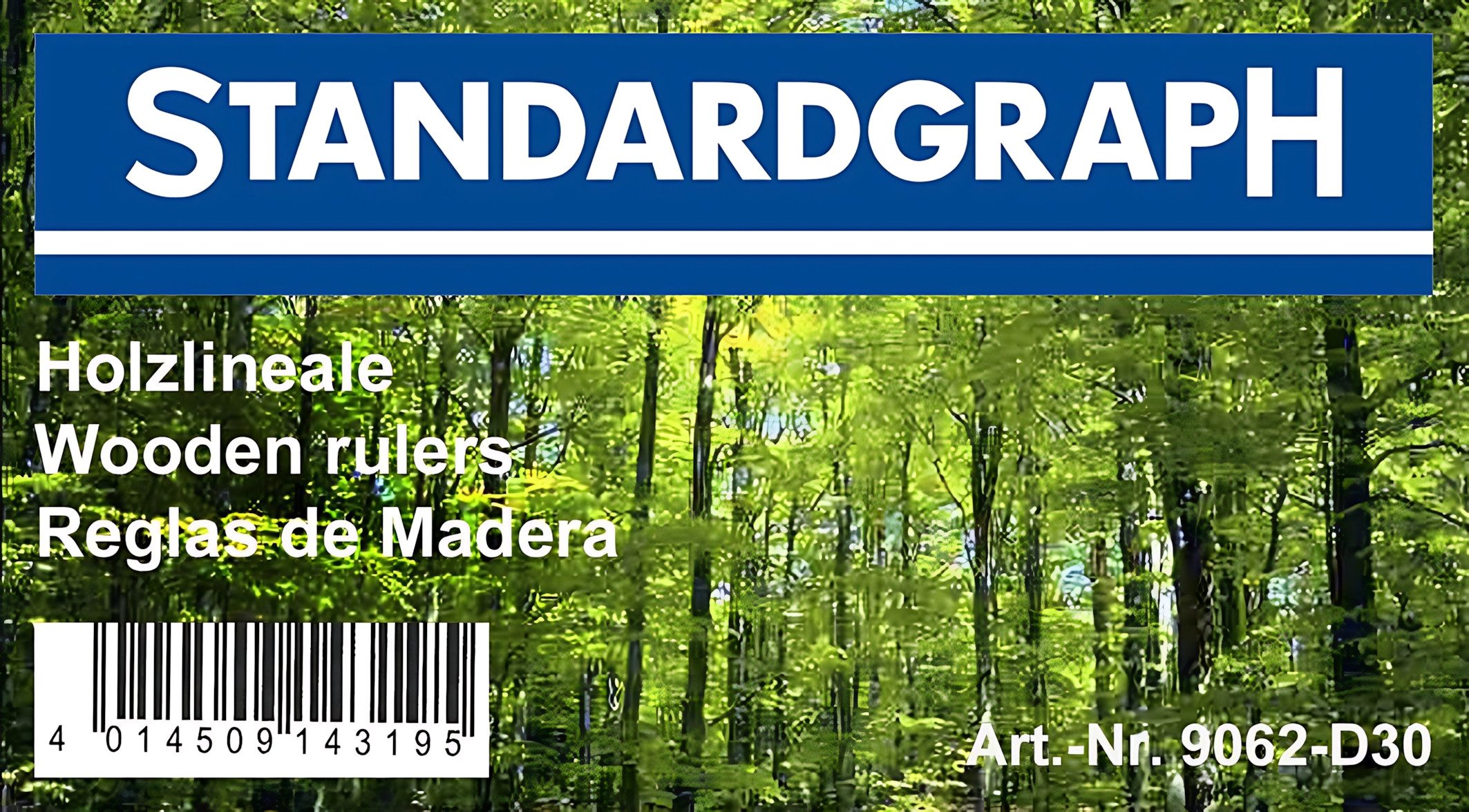 Zeichenlineal Standardgraph Holzlineal 20 cm mit Stahleinlage im 30er Display