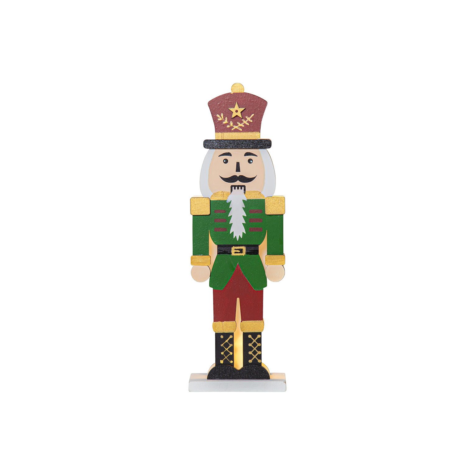 Bunter LED Nussknacker ,Nutcracker' aus Holz, Batterien + Timer, warmweiß, H 25cm