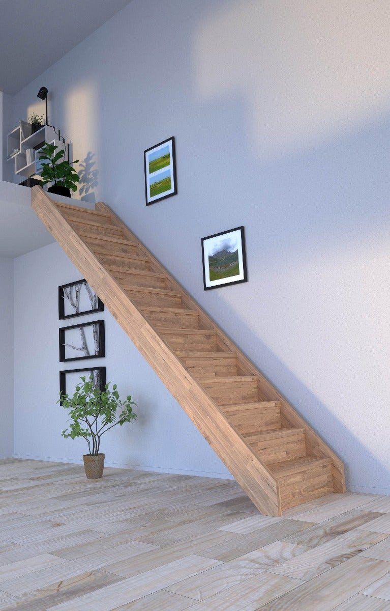 Technische Daten für das Treppenmodell Wangentreppe Mykonos (Eiche) in gerader Ausführung-ohne Geländer-mit Setzstufen - wie auf dem Foto dargestellt.