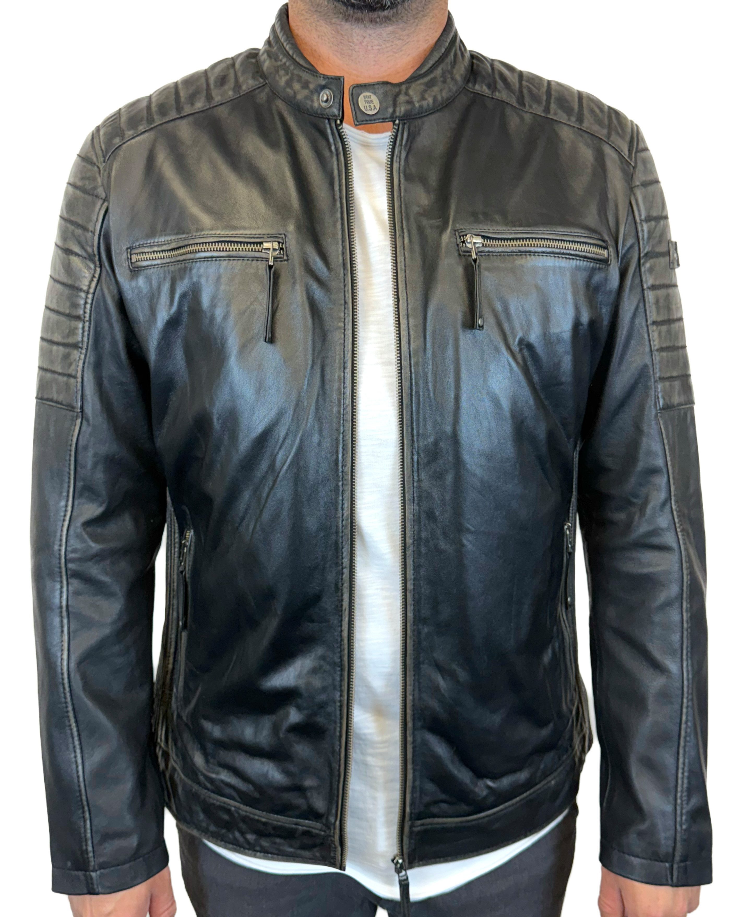 Der Händler empfiehlt eine Größe größer zu bestellen Herren Lederjacke aus feinstem Lammnappa – Vintage Look trifft Biker-Style Diese hochwertige Herren Lederjacke vereint klassischen Biker-Style mit modernem Vintage-Charme. Gefertigt aus 100 % feinstem Lammnappa-Leder überzeugt sie durch ihre besonders weiche Haptik und exzellente Passform. Der authentische Vintage-Look entsteht durch eine spezielle Waschung, die jeder Jacke einen individuellen Charakter verleiht. Gesteppte Schulterpartien und markante Ziernähte sorgen für eine maskuline Optik mit Wiedererkennungswert. Funktionale Taschen mit Reißverschlüssen und hochwertige Innenverarbeitung bieten Komfort und Langlebigkeit. Fazit: Ob auf dem Motorrad oder in der City – diese Lederjacke ist ein Statement für stilbewusste Männer mit Sinn für Qualität und Design
