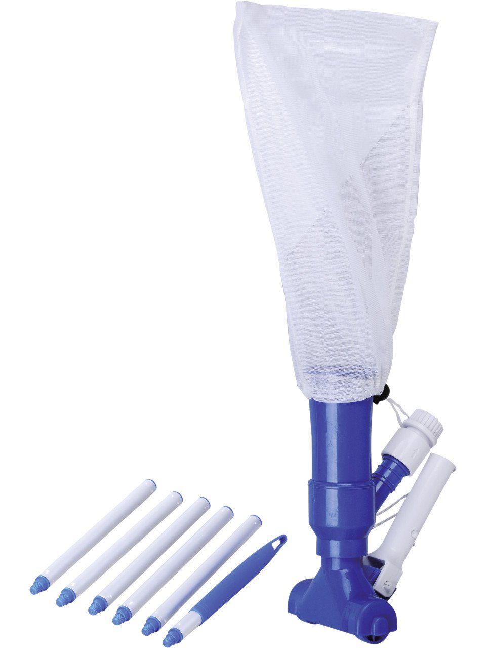 Venturibodensauger zur schnellen und einfachen Reinigung des Poolbodens. Für die Reinigung wird der Sauger direkt an einen Gartenschlauch angesteckt. Mittels Venturiprinzip wird die Verschmutzung am Boden des Pools direkt in ein am Kopf des Saugers befestigten Auffangbehälter gedrückt. Eine 150 cm lange Aluminiumstange sorgt für ein angenehmes Handling. Ein zusätzlicher Anschluss für handelsübliche Teleskopstangen ist serienmäßig.