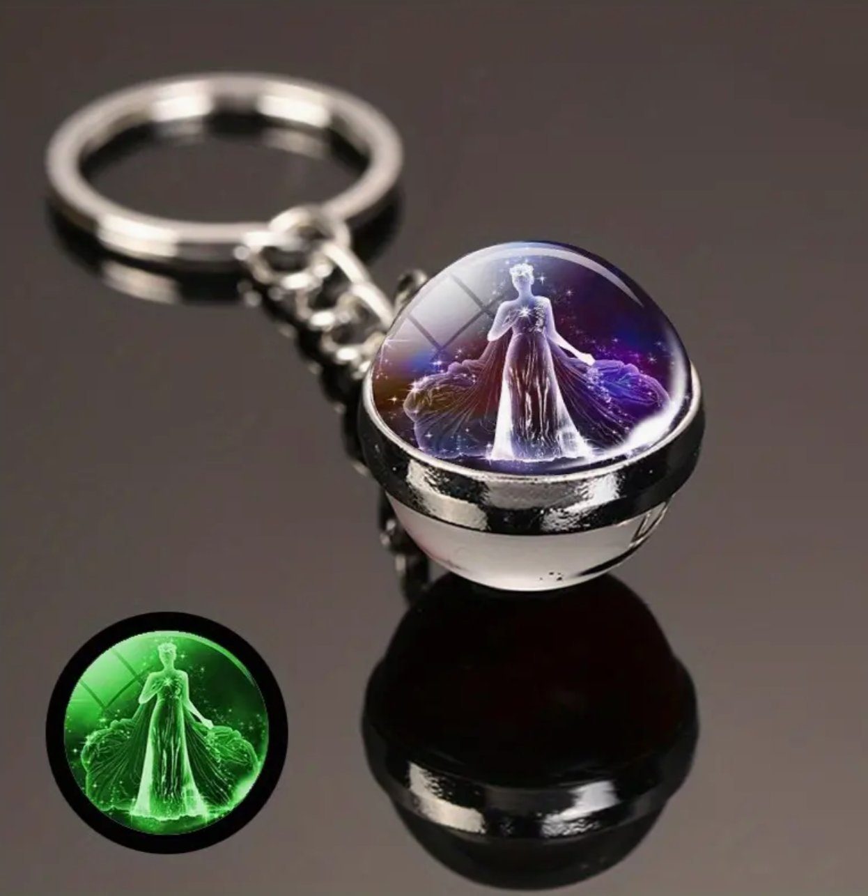 Stelby Schlüsselanhänger mit Gravur Jungfrau Sternzeichen Schlüsselanhänger 3D mit Geschenkbox (Weihnachtsgeschenk, Geburtstagsgeschenk, Valentinstaggeschenk, Gravur mit Glow-Effekt), langlebig, pflegeleicht, unisex