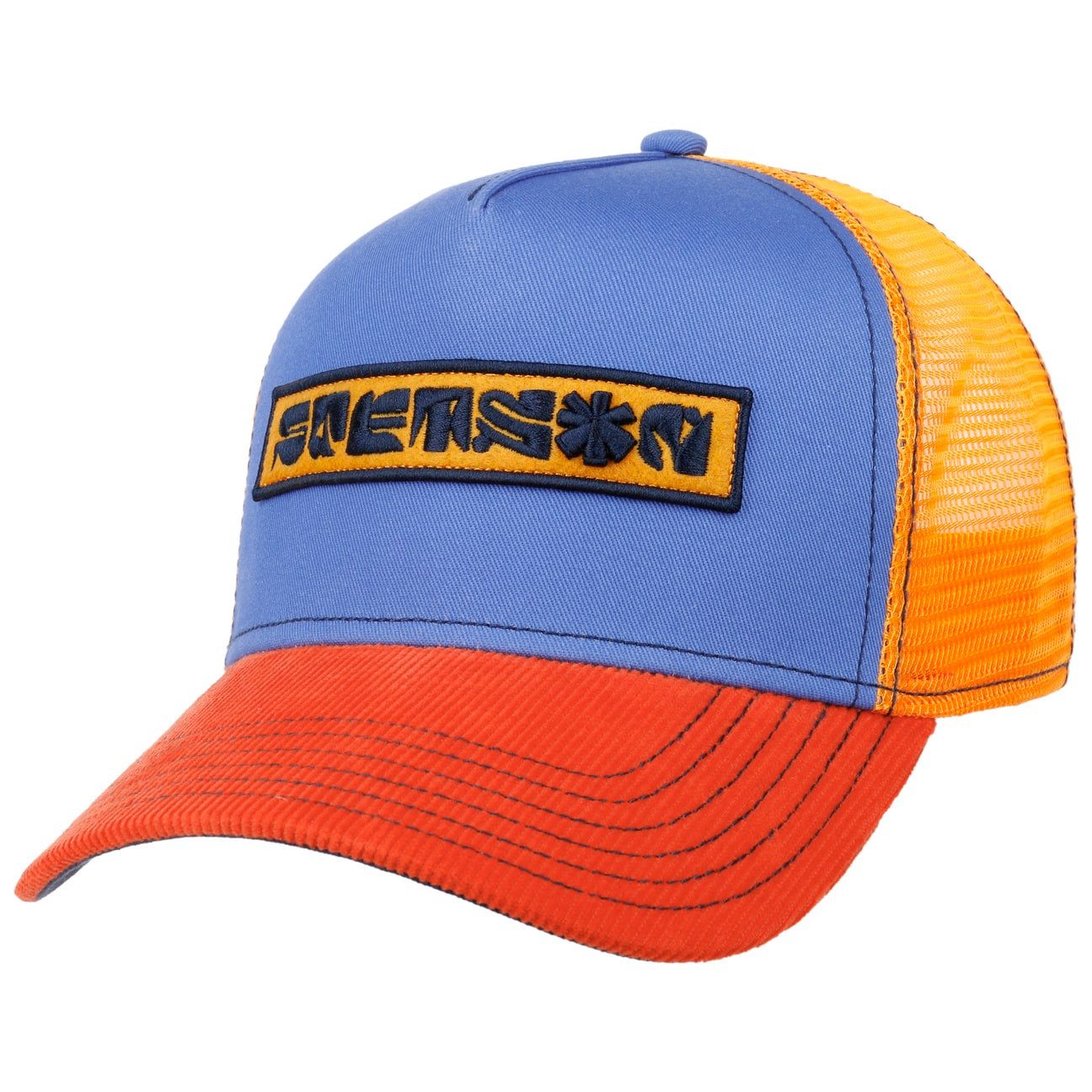 Farbenfrohes Design. Die Trucker Cap von Stetson entstand in Zusammenarbeit mit dem kreativen französischen Designstudio The Feebles. Mit ihrem auffälligen Stencil-Schriftzug und einer knallig bunten Farbauswahl sorgt diese Basecap definitiv für Aufmerksamkeit. Der großflächige Mesh-Einsatz am Hinterkopf schafft eine angenehme Belüftung und der Schirm schützt zuverlässig vor UV-Strahlen. Diese Kappe lässt sich ideal zu einfarbigen und bunten Looks kombinieren und passt zu sportlichen und lässigen Outfits oder Streetwear. Größenverstellbarer Snapback-Verschluss.