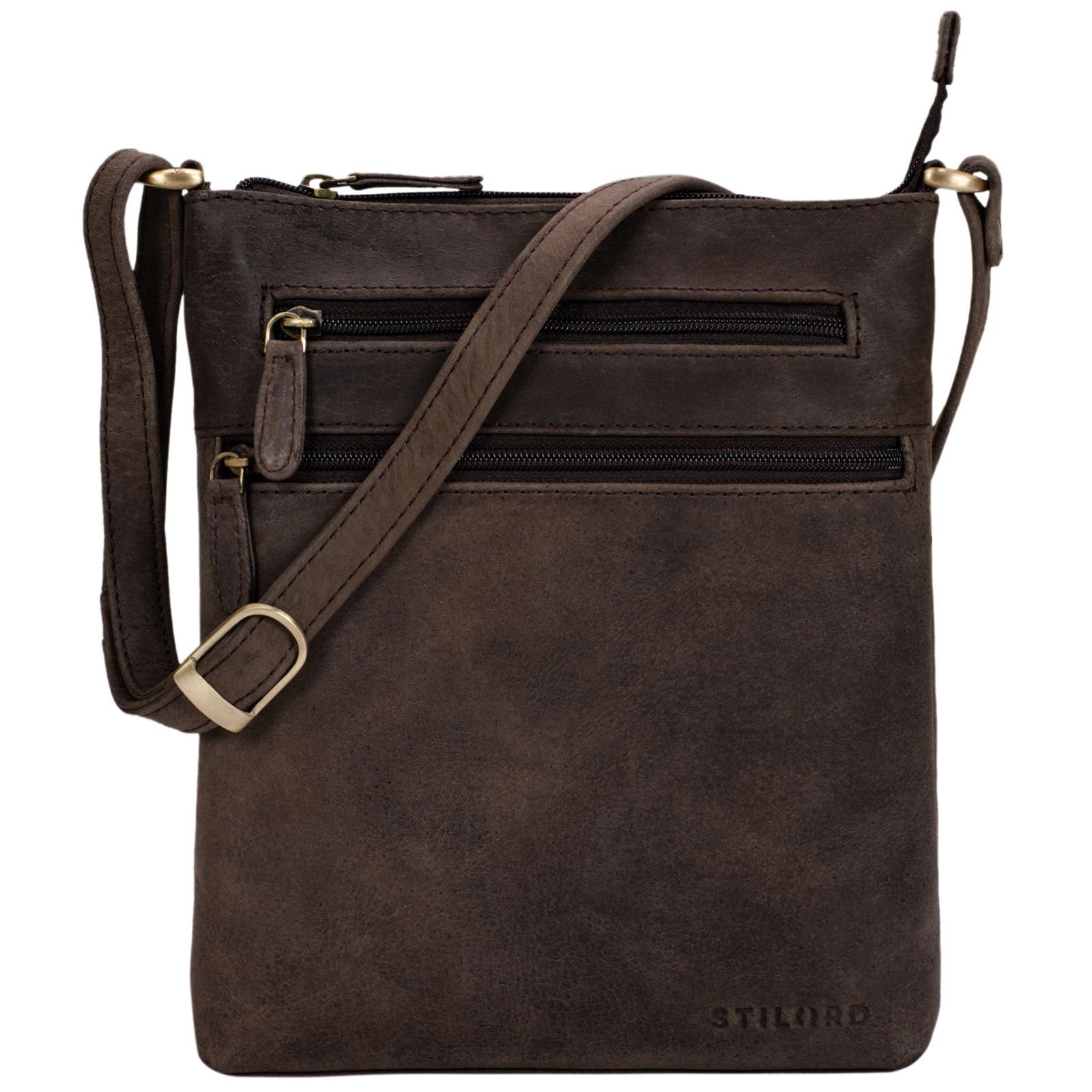 Eine Handtasche zum Umhängen aus echtem Leder und ein unverwechselbares STILORD Unikat - das ist Juna, unsere kleine Damen Umhängetasche. Die Damentasche passt dank zeitlos-elegantem Vintage Design in warmen braunen Farbtönen einfach immer und überall - bei einem entspannten Stadtbummel, zum Ausgehen und Feiern sowie bei festlichen Anlässen. Lassen Sie sich von den vielen Vorteilen der klassischen Schultertasche überzeugen: eine durchdachte Innenaufteilung mit viel Stauraum für ein 9.7 Zoll Tablet, Schlüssel, Portemonnaie und Smartphone, ein modernes Erscheinungsbild sowie eine qualitativ hochwertige Verarbeitung!