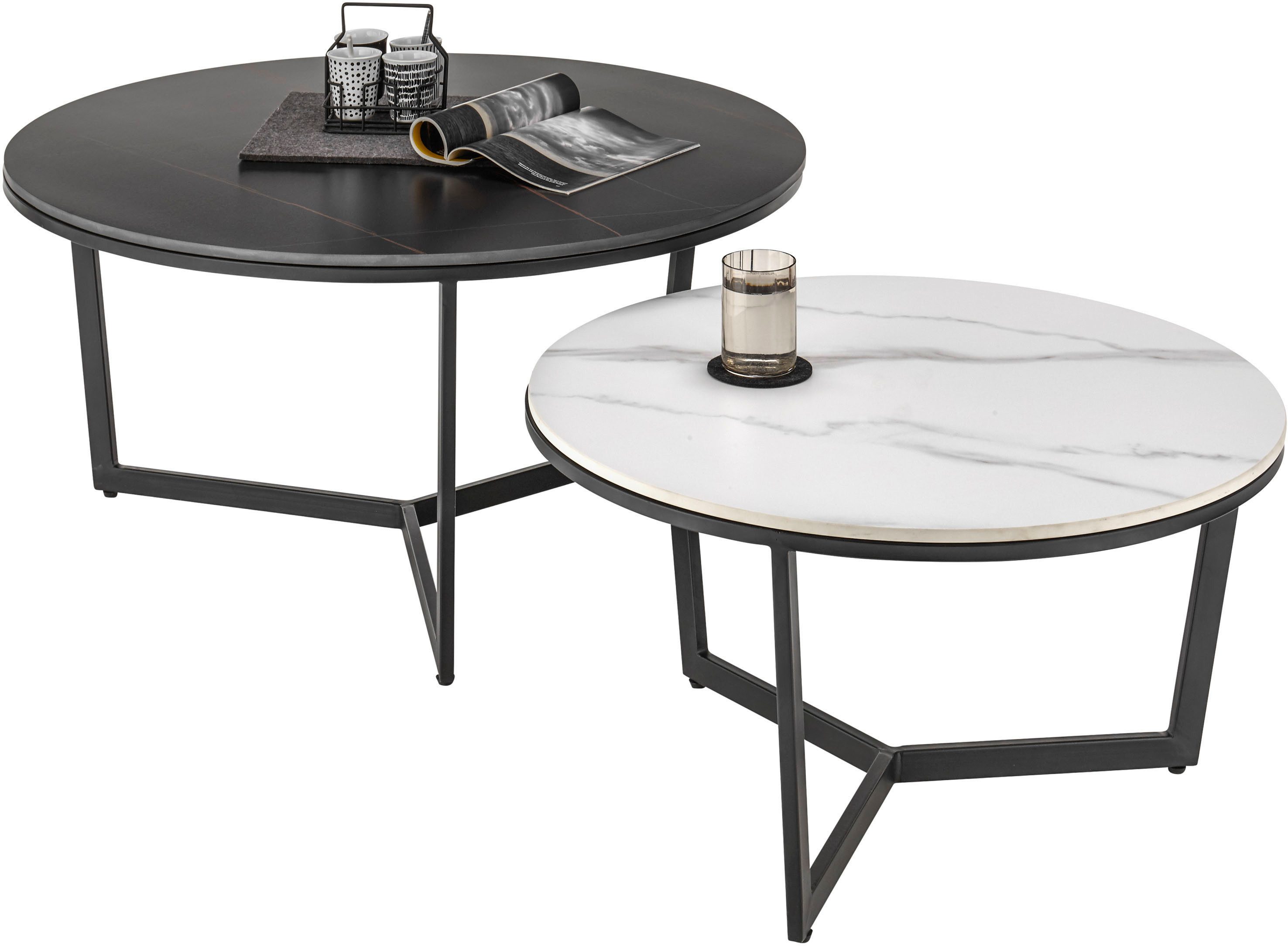 | Details Tischplatte | Couchtisch SET mit schwarzer und weißer Keramiktischplatte |