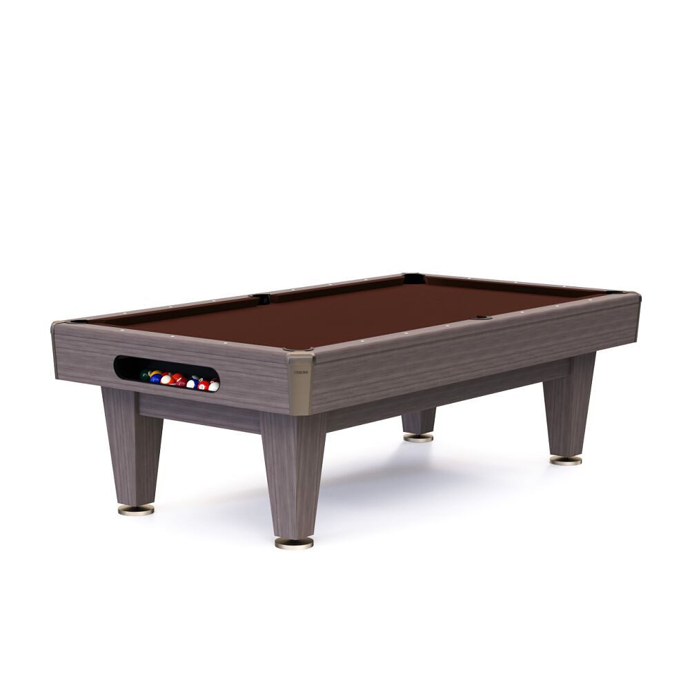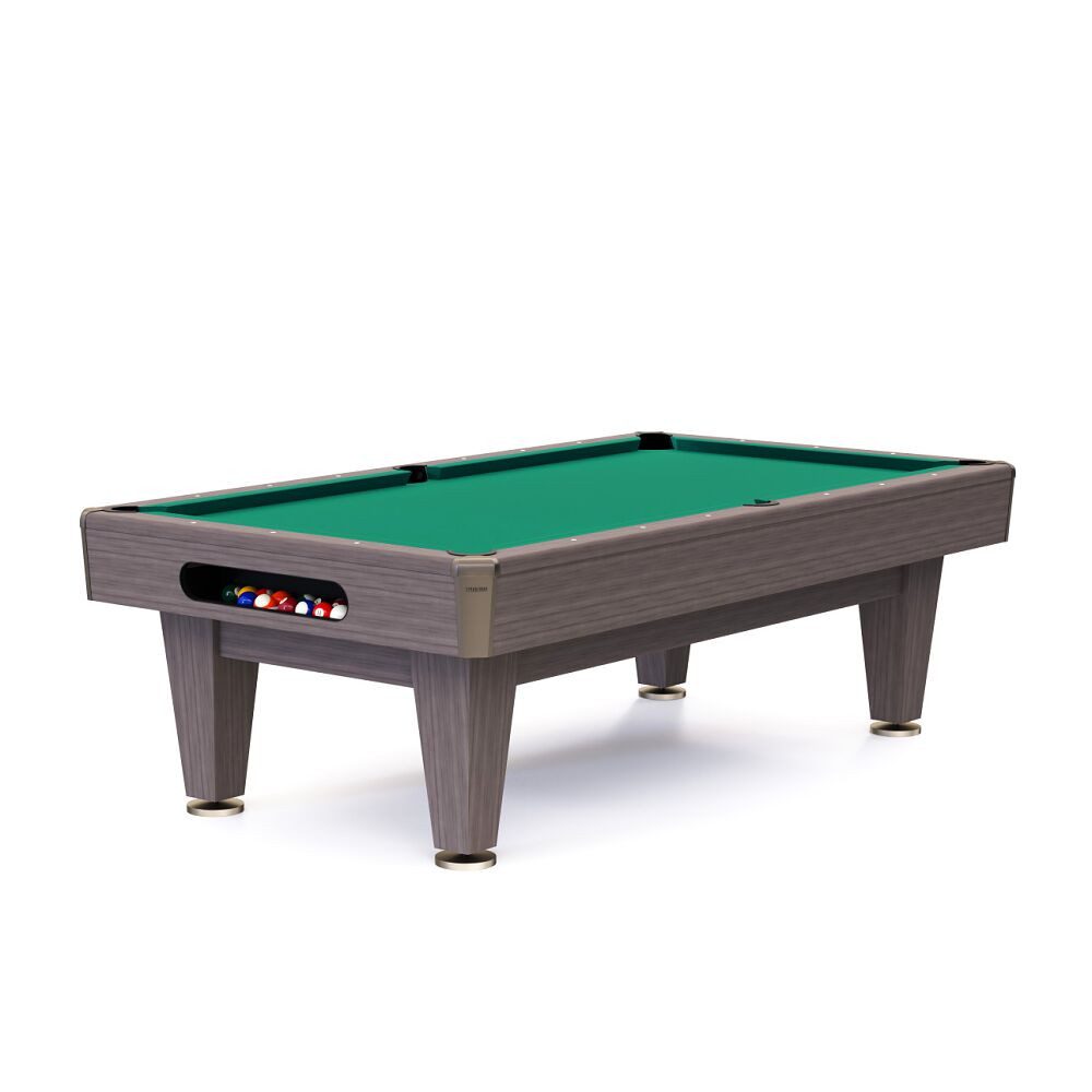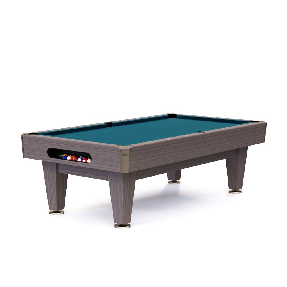 Die Ecken- und Banden-Verbinder bestehen aus massivem Metall mit einem gravierten Stradivari Logo und einem matten, gebürsteten Pearl Nickel Finish. Die Tischfüße sind aus dem gleichen hochwertigen Material gefertigt. Die Anspielpunkte auf den Banden sind aus Edelstahl und sorgfältig eingelassen.