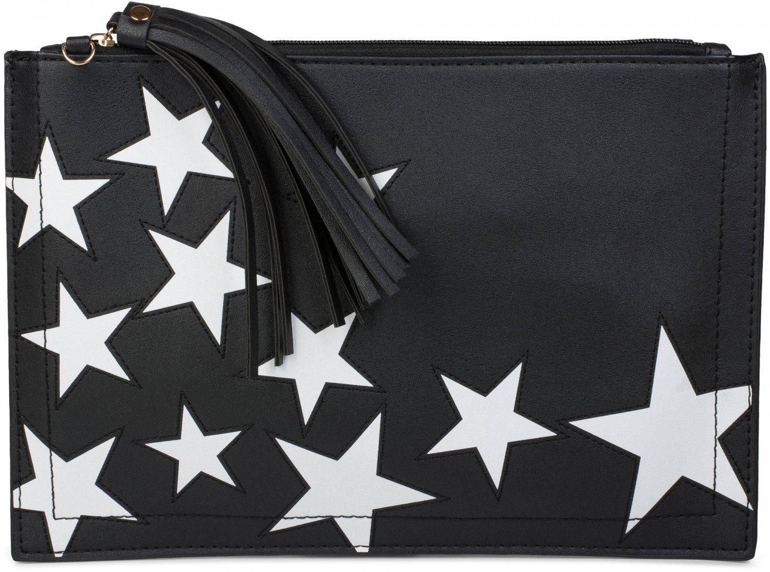 styleBREAKER moderne Clutch mit All Over Sterne Muster, Quaste am Reißverschluss.