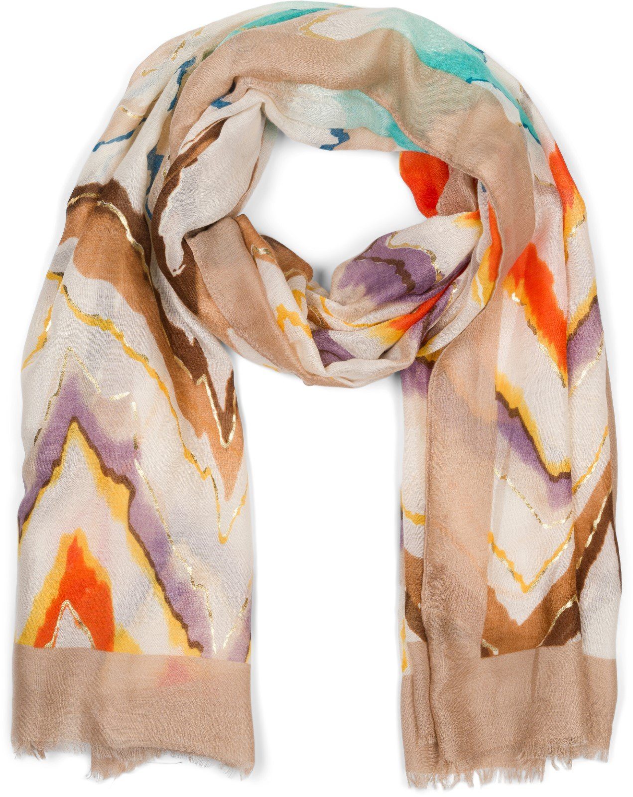 - Weicher Schal mit kurzen Fransen an den Enden und mehrfarbigem Zick-Zack Muster mit Metallic Akzenten