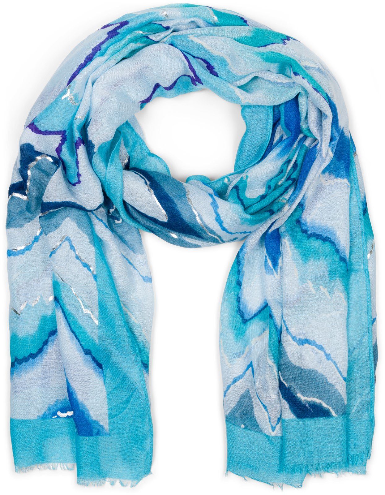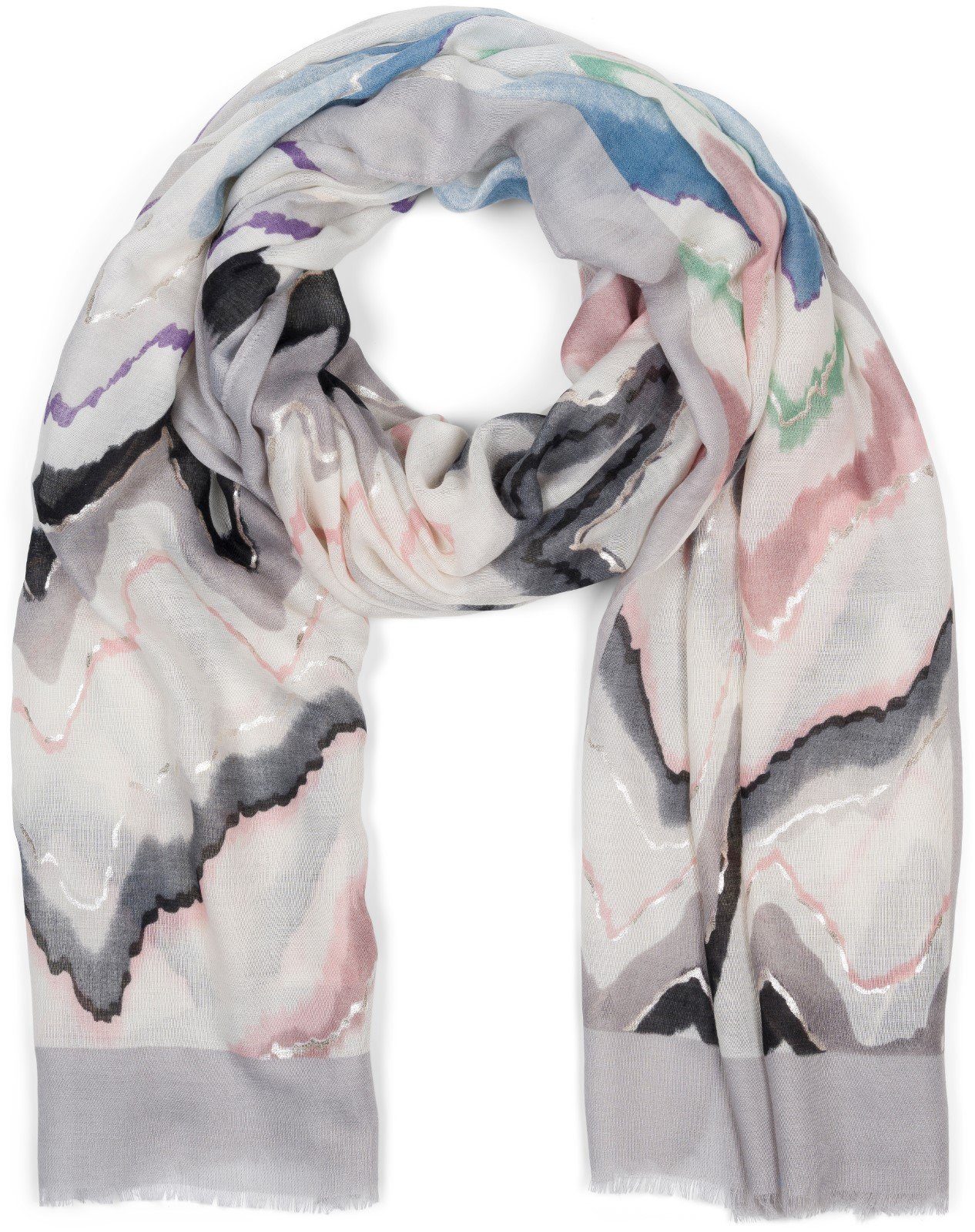Unser styleBREAKER Schal mit Modernem Zackenmuster und Metallic Akzenten ist das Must-Have für jede Jahreszeit. Verleihe deinem Look Eleganz und Wärme, sei es beim täglichen Styling oder besonderen Anlässen. Dieser vielseitige Schal mit mehrfarbigem Zick-Zack Muster und kurzen Fransen an den Enden fügt deinem Outfit den perfekten Hauch von Chic hinzu. Ob als Schal um den Hals gewickelt oder als Stola über die Schultern gelegt, er sorgt für einen modernen Touch. Aus weichem und leichtem Material gefertigt, garantiert er Komfort und Stil. Lass deiner Kreativität freien Lauf und trage ihn zu verschiedenen Gelegenheiten, sei es im Büro, beim Abendessen oder bei festlichen Events. Entdecke, wie dieser Schal deinem Look das gewisse Etwas verleiht – ein echtes Fashion-Statement.