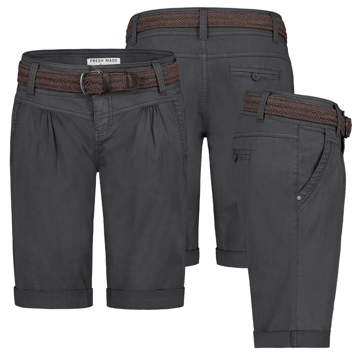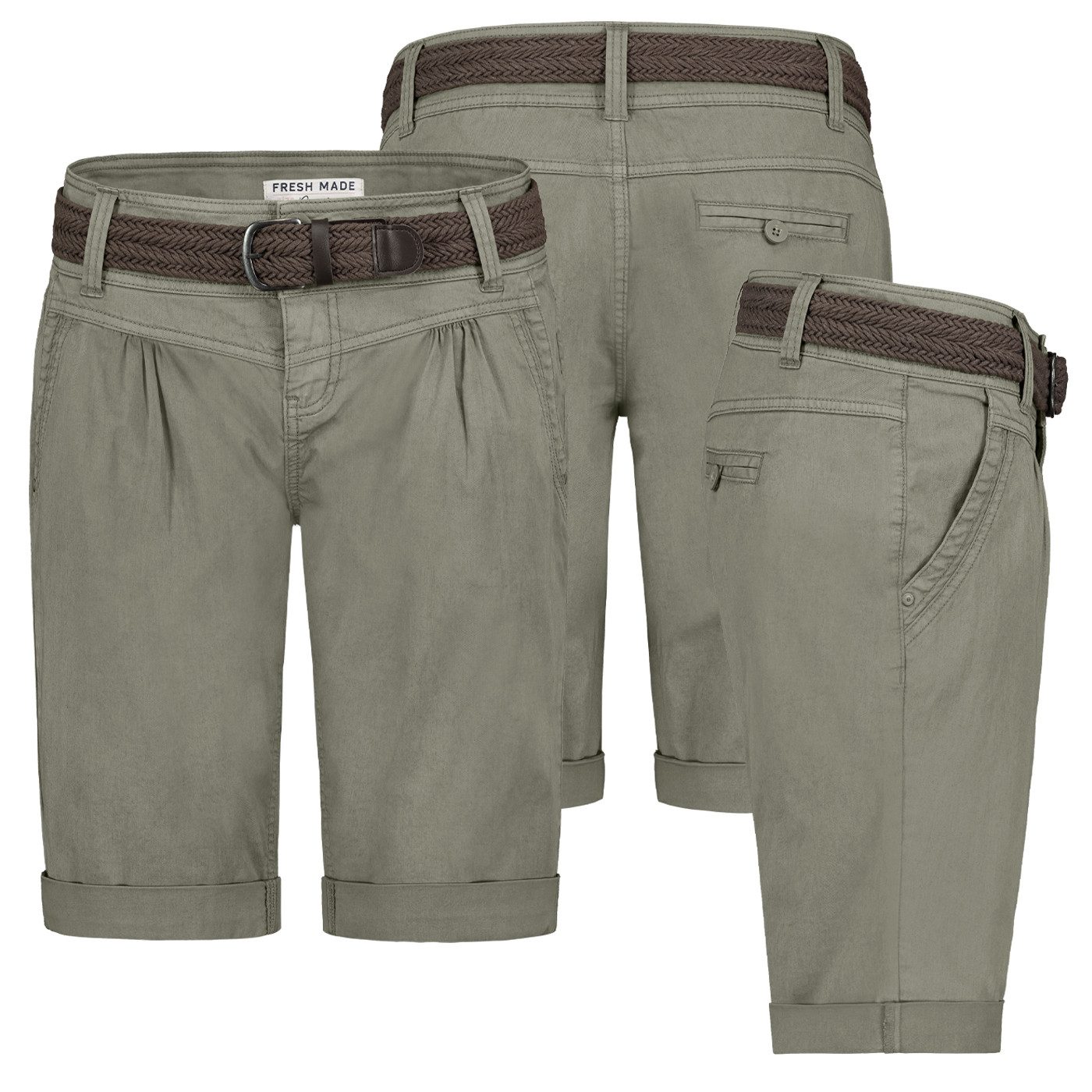 Die Sublevel Damen Bermuda Shorts aus leichtem Chino-Stoff sind der perfekte Begleiter für warme Sommertage. Mit ihrer klassischen Passform, dem modischen Umschlag am Beinabschluss und dem farblich abgestimmten Gürtel verbinden sie stilvolles Design mit hohem Tragekomfort. Das Material aus Baumwolle mit leichtem Stretch-Anteil sorgt für ein angenehmes Tragegefühl – ob beim Stadtbummel, im Urlaub oder beim Treffen mit Freunden. Die Shorts lassen sich vielseitig kombinieren und passen sowohl zu sportlichen als auch zu eleganteren Looks.