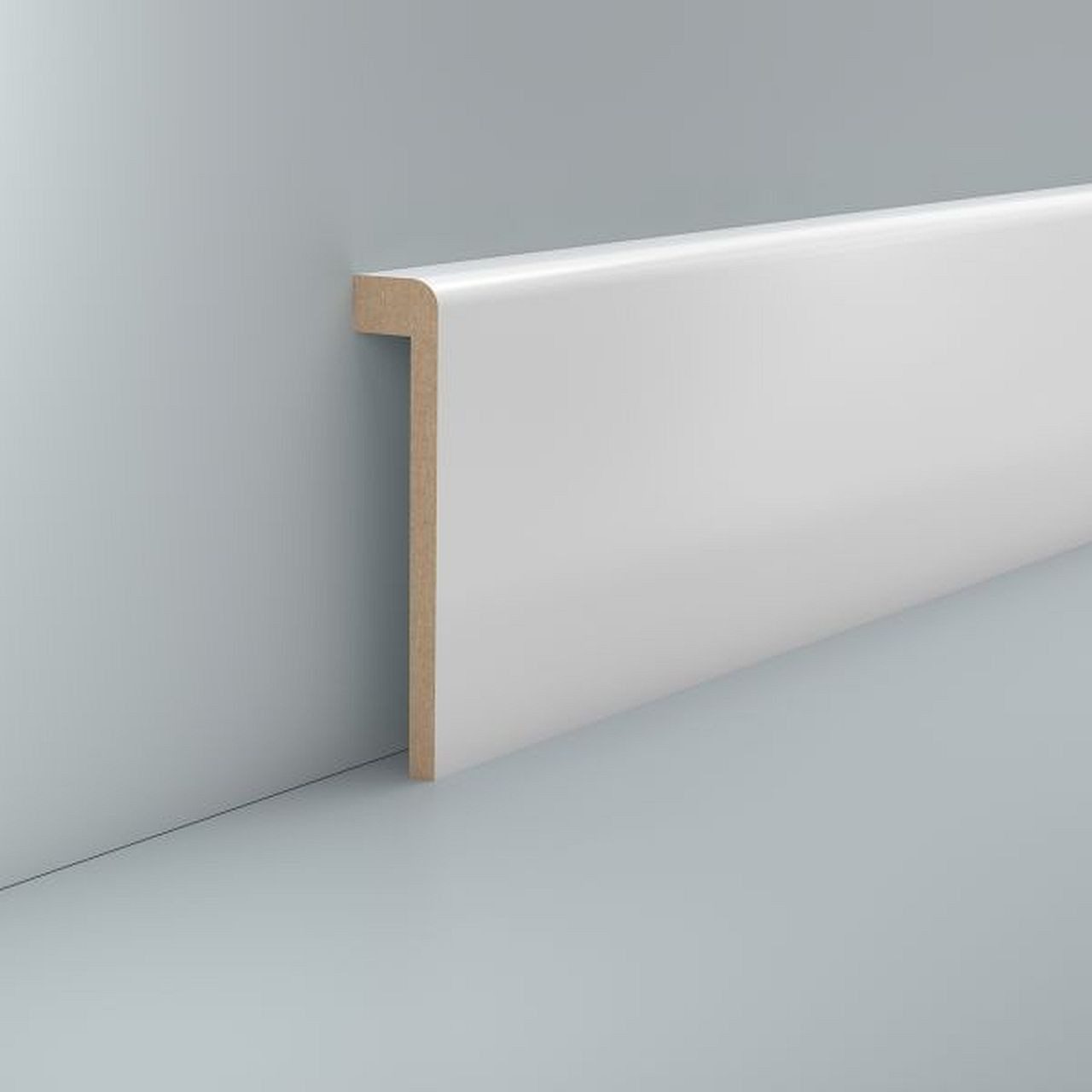 Diese Abdeckleiste für Fliesensockel Modell Lankwitz ist aus hochwertigen formstabilen MDF und mit einer weißen (annähernd RAL 9016) lackierfähigen und robusten Qualitätsfolie ummantelt.