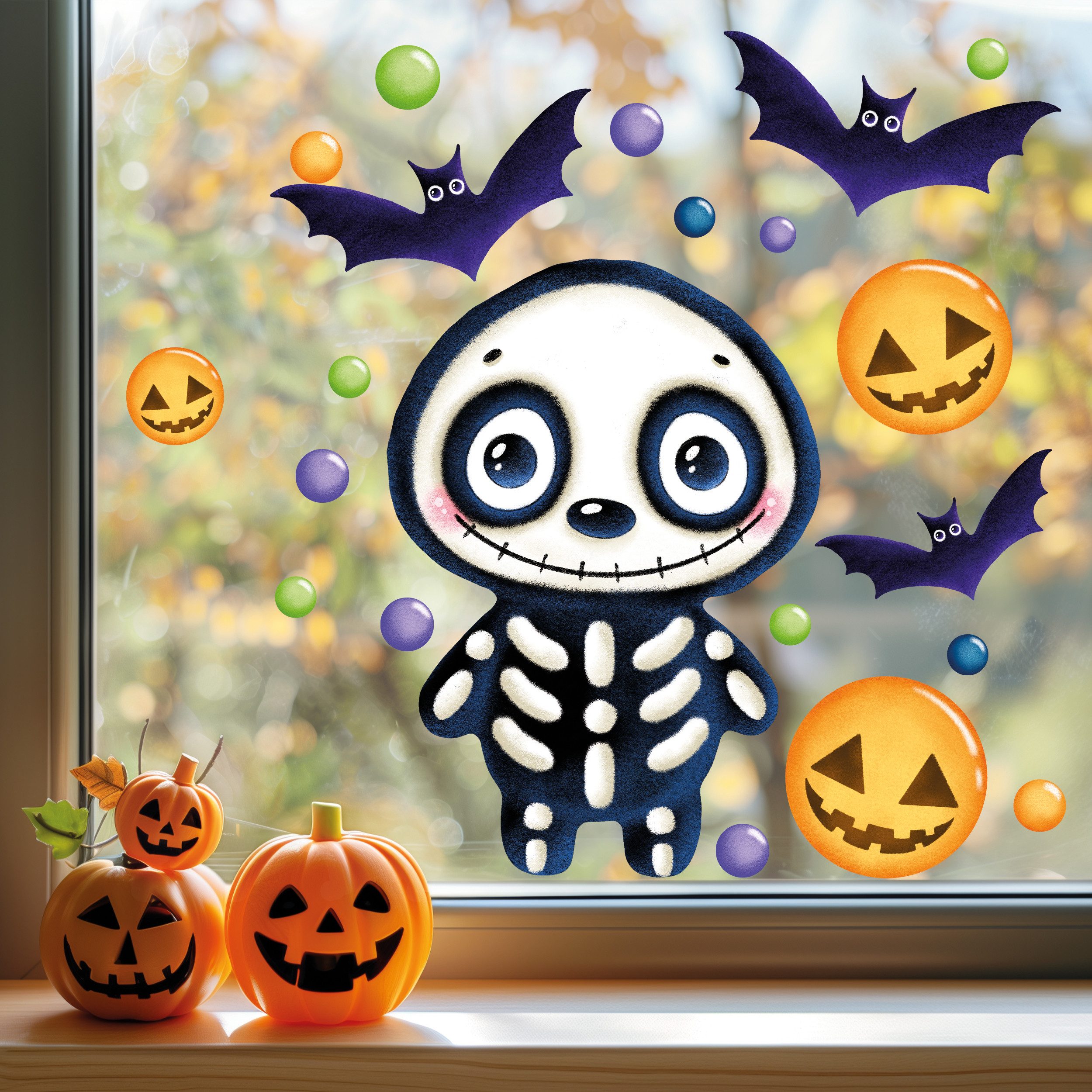 Dieses zauberhafte Fensterbild bringt die Magie von Halloween direkt in dein Zuhause. Im Mittelpunkt steht ein niedlicher kleiner Skelett-Charakter mit großen, staunenden Augen, das trotz seines gruseligen Outfits ein Lächeln auf die Lippen zaubert. Umgeben von fröhlich leuchtenden Kürbissen mit verspielten Grinsegesichtern und flatternden Fledermäusen, die durch die Luft tanzen, verbreitet dieses Fensterbild eine verspielte und gleichzeitig mystische Atmosphäre. Die bunten Kreise, die das Bild ergänzen, fügen einen Hauch von Lebendigkeit und Freude hinzu – perfekt für eine fröhlich-schaurige Halloween-Dekoration. Unser Fensterbild ist aus hochwertigem Material gefertigt und lässt sich mühelos auf glatten Oberflächen wie Fenstern oder Spiegeln anbringen. Es haftet ohne Klebstoff und hinterlässt keine Rückstände, was eine einfache Anbringung und Entfernung ermöglicht. Die klaren Farben und die detailreiche Gestaltung machen dieses Bild zu einem Blickfang, der das Auge erfreut. Mit einer Größe von A2, A3 oder A4 passt das Fensterbild perfekt in verschiedene Wohnbereiche wie Wohnzimmer, Schlafzimmer oder Kinderzimmer. Es ist eine großartige Möglichkeit, Ihren persönlichen Stil zu zeigen und Ihre Räume mit einer verspielten Note zu gestalten. Entdecken Sie den Zauber von Halloween mit unserem Fensterbild und bringen Sie etwas Grusel und Lebensfreude in Ihr Zuhause!