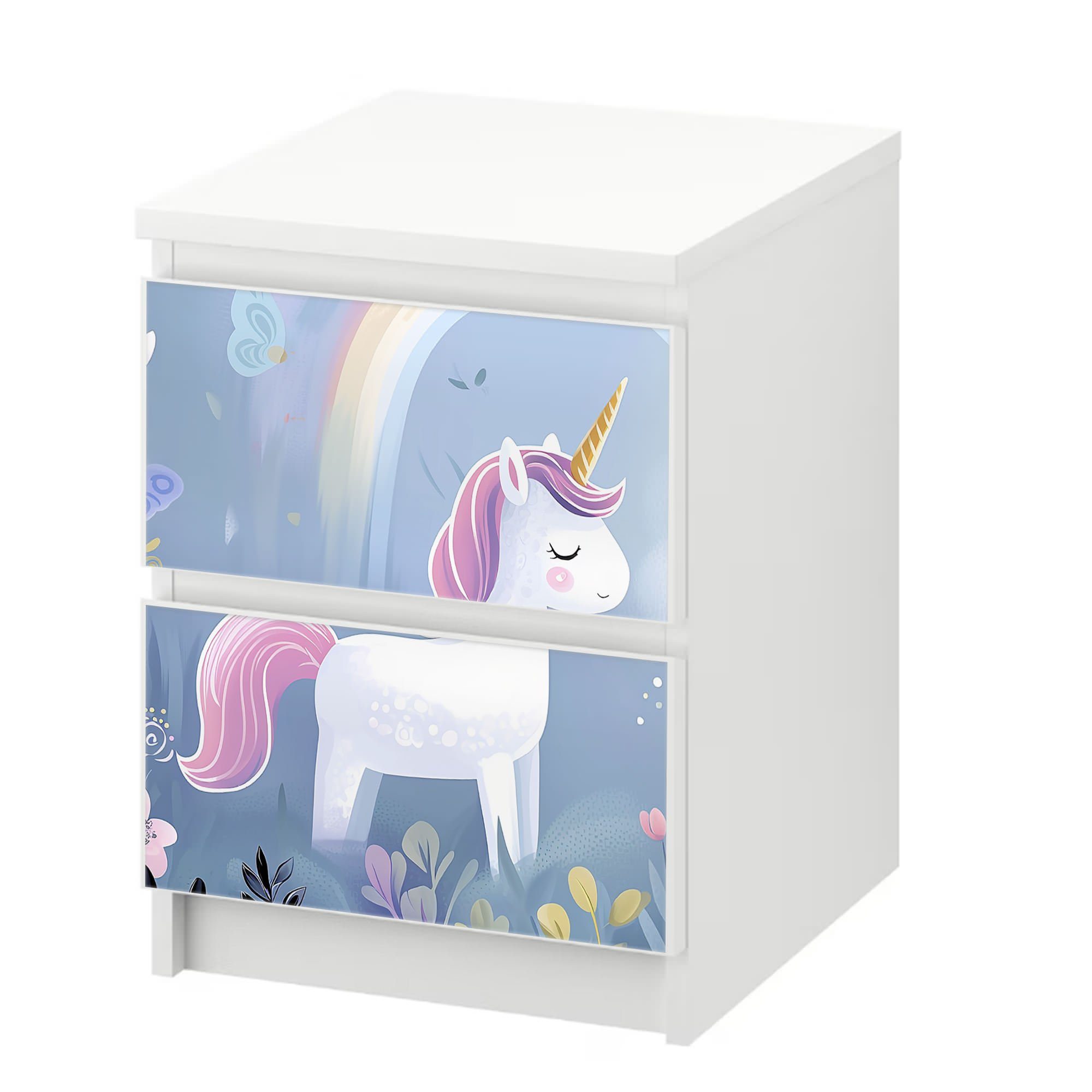 "Verleihen Sie Ihrer Malm Kommode mit unserer maßgeschneiderten Möbelfolie und Einhorn im Zauberwald Motiv einen frischen, stilvollen Look. Die exklusive Designfolie für Malm Schubladen ist die perfekte Wahl für eine schnelle und effektive Verschönerung Ihrer Möbel. Ob Sie die Atmosphäre Ihres Schlafzimmers aufwerten oder eine kreative Wickelauflage Malm Kommode für das Kinderzimmer gestalten möchten – unsere selbstklebende Folie bietet Ihnen endlose Möglichkeiten. Unsere hochwertige Dekorfolie für Malm Möbel ist speziell für die Maße der beliebten -Serie entworfen. Sie ermöglicht es Ihnen, im Handumdrehen aus einem gewöhnlichen Möbelstück ein individuelles Kunstwerk zu schaffen. Mit einer Auswahl an Farben und Mustern, die von schlicht und elegant bis hin zu fröhlich und kindgerecht für die Klebefolie Möbel Kinderzimmer reichen, können Sie Ihrer Malm Kommode einen persönlichen Touch verleihen. Die Malm Kommode Individualisierung war noch nie so einfach. Unsere Malm Designsticker sind für eine blasenfreie Anwendung konzipiert, dank der innovativen Luftkanaltechnologie, die eine glatte und professionelle Optik garantiert. Keine Falten, keine Luftblasen – nur ein makelloses Finish, das Ihre Malm Kommode zum Hingucker macht. Machen Sie aus Ihrer Malm Kommode ein Unikat und genießen Sie das neue Erscheinungsbild, das durch unsere Malm Spezialfolie ermöglicht wird. Geeignet für - Malm 6 Schubladen ≈ 80 cm. Perfekte Schubladenfolie für Malm die Ihren Wohnraum perfekt ergänzt. Mit der Malm Schrank Verschönerung von Sunnywall Manufaktur aus Berlin setzen Sie auf Qualität und Design, die Hand in Hand gehen. Mit nur wenigen Handgriffen verwandelt unsere Möbelfolie Ihre Malm Kommode und verleiht jedem Raum einen Hauch von Eleganz und Persönlichkeit. Entdecken Sie die einfache Art der Möbeltransformation und erfreuen Sie sich an einem Zuhause, das Ihre eigene Designvision widerspiegelt."