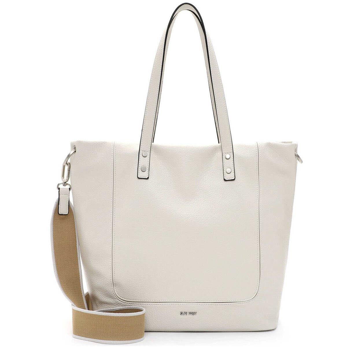 Die Kimberly ist eine Damen Schultertasche von Suri Frey aus hochwertigen Kunstleder in Ecru Beige. Die individuelle Narbung des Kunstleders macht sie zu etwas ganz Besonderem. Das Hauptfach kann durch einen Reißverschluss geöffnet und geschlossen werden. Die Handtasche bietet Platz für alle Dinge, auf die du im Alltag nicht verzichten möchtest. Durch den mitgelieferten Umhängegurt aus Canvas in Beige kann der Shopper auch crossover getragen werden. Die Tasche wurde aus veganen Inhaltsstoffen gefertigt und erhält das durch die PETA verliehene Logo "PETA-Approved Vegan".