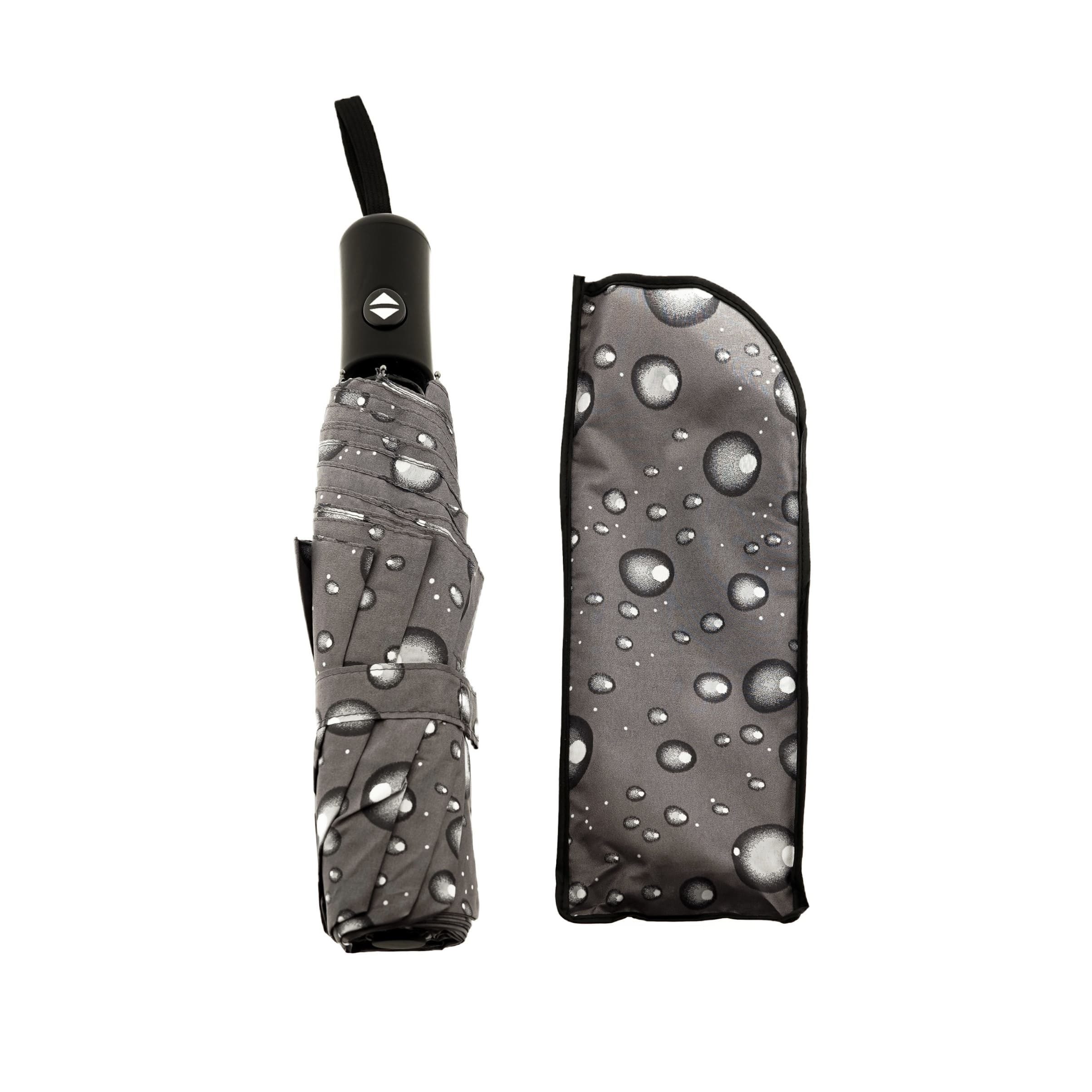 Dieser stilvolle Taschenschirm mit Regentropfendesign vereint Ästhetik und Funktionalität. Er wird mit einer praktischen Schutzhülle geliefert, die durch ihre schwarze Umrandung ein elegantes Detail bietet.