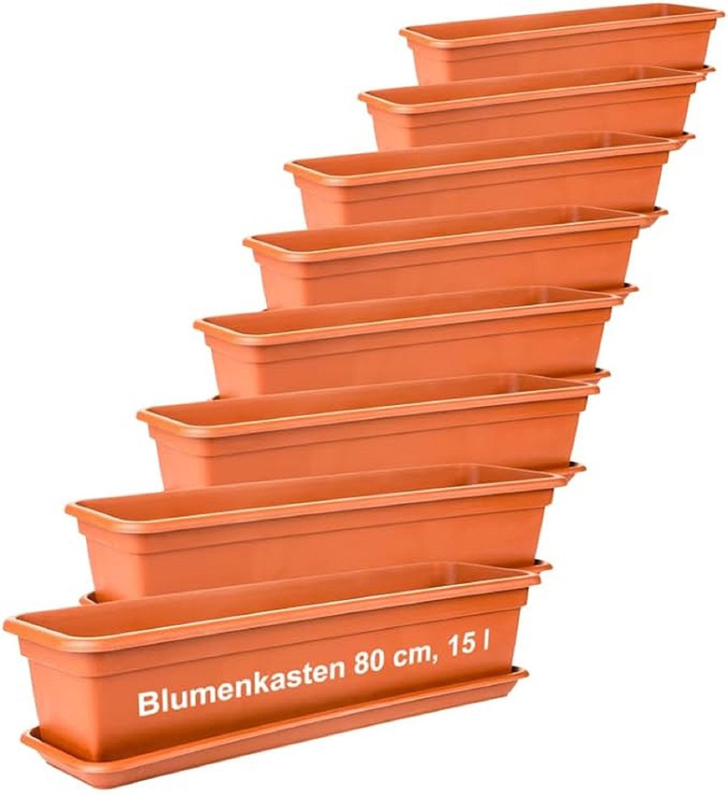 8 Blumenkästen 80x14x17 cm, 8 Untersetzer, Terracotta