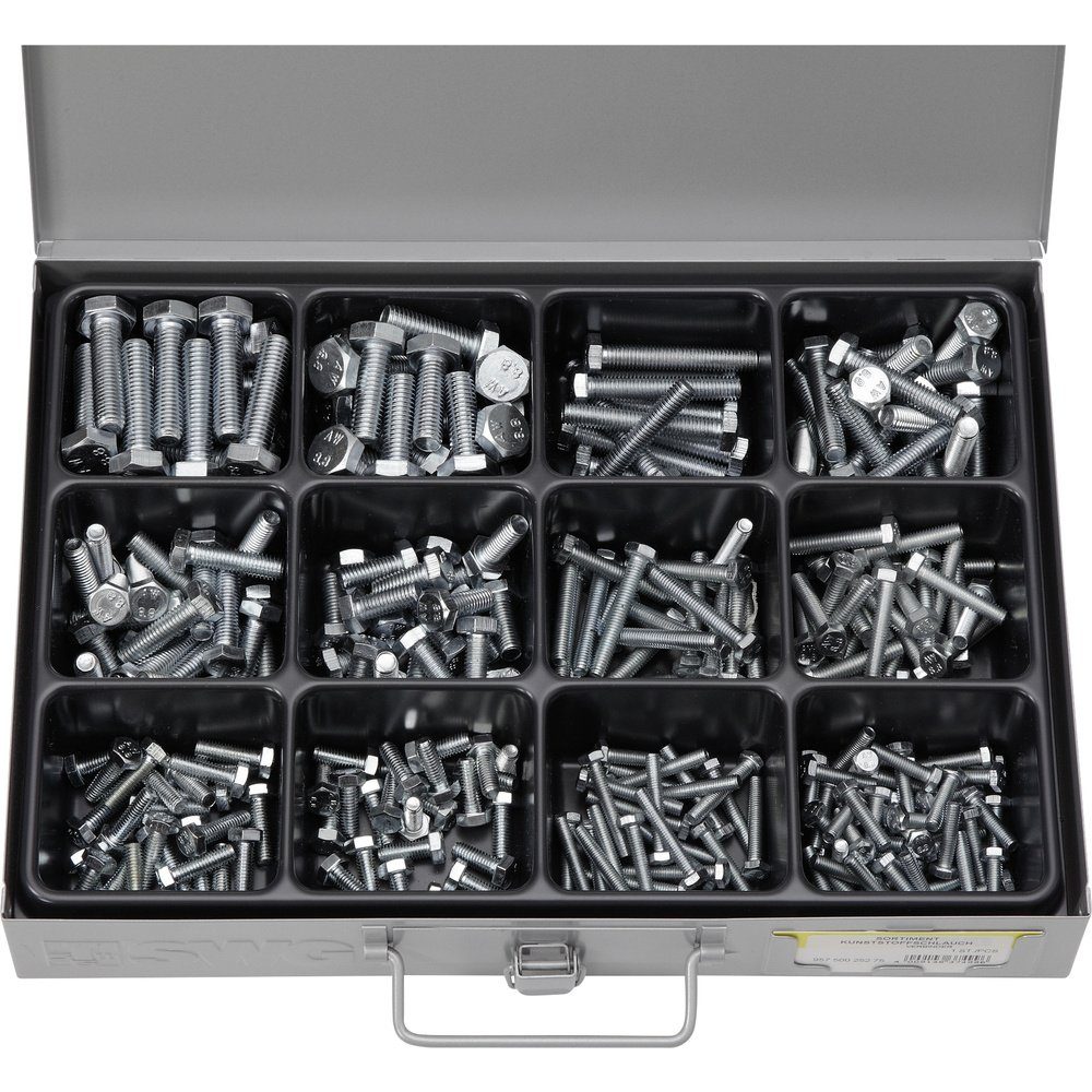 M5 x 20 50 Stück + M5 x 30 25 Stück + M6 x 16 25 Stück + M6 x 20 25 Stück + M6 x 30 25 Stück + M6 x 40 20 Stück + M8 x 20 20 Stück + M8 x 30 20 Stück + M8 x 40 20 Stück + M8 x 50 10 Stück + M10 x 30 20 Stück + M10 x 40 20 Stück