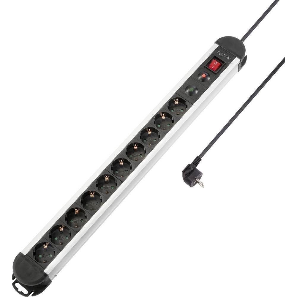 | Eigenschaften | Betriebsspannung: 230 V/AC · Einsatzort: Innenbereich · Herstellerfarbe: Silber, Schwarz · Kabel-Typ nach DIN/VDE: H05VV-F 3G 1,5 mm² · Kabellänge: 1.50 m · Material: Aluminium, Kunststoff · Netzstecker-Typ: Schutzkontakt · Plastikfreie Verpackung: Plastikfreie Verpackung · Produktabmessung, Breite: 69 mm · Produktabmessung, Höhe: 51 mm · Produktabmessung, Länge: 695 mm · Steckdosen-Anzahl: 10 · Steckdosenleisten-Besonderheiten: mit Schalter, Überspannungsschutz · Überspannungsschutz für: Steckdosen |