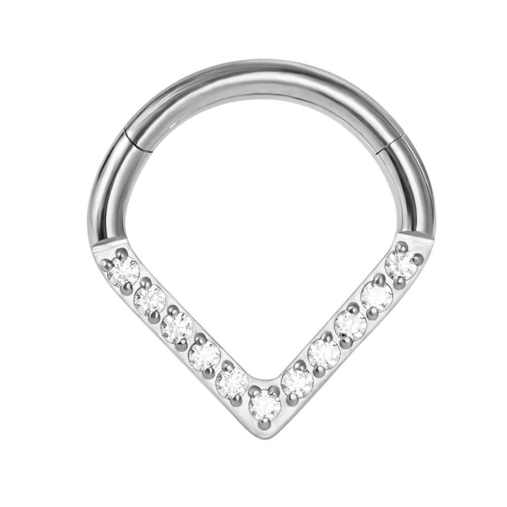 Dieser tropfenförmige Piercing Clicker aus Titan G23 kombiniert elegantes Design mit höchster Materialqualität. Die filigrane Tropfenform mit funkelnden Zirkonia-Steinen verleiht dem Schmuckstück eine edle Ausstrahlung und macht es zu einem echten Allrounder – ob als Septum Piercing, Helix Piercing, Daith Piercing, Rook Piercing oder als vielseitiges Universal Piercing.