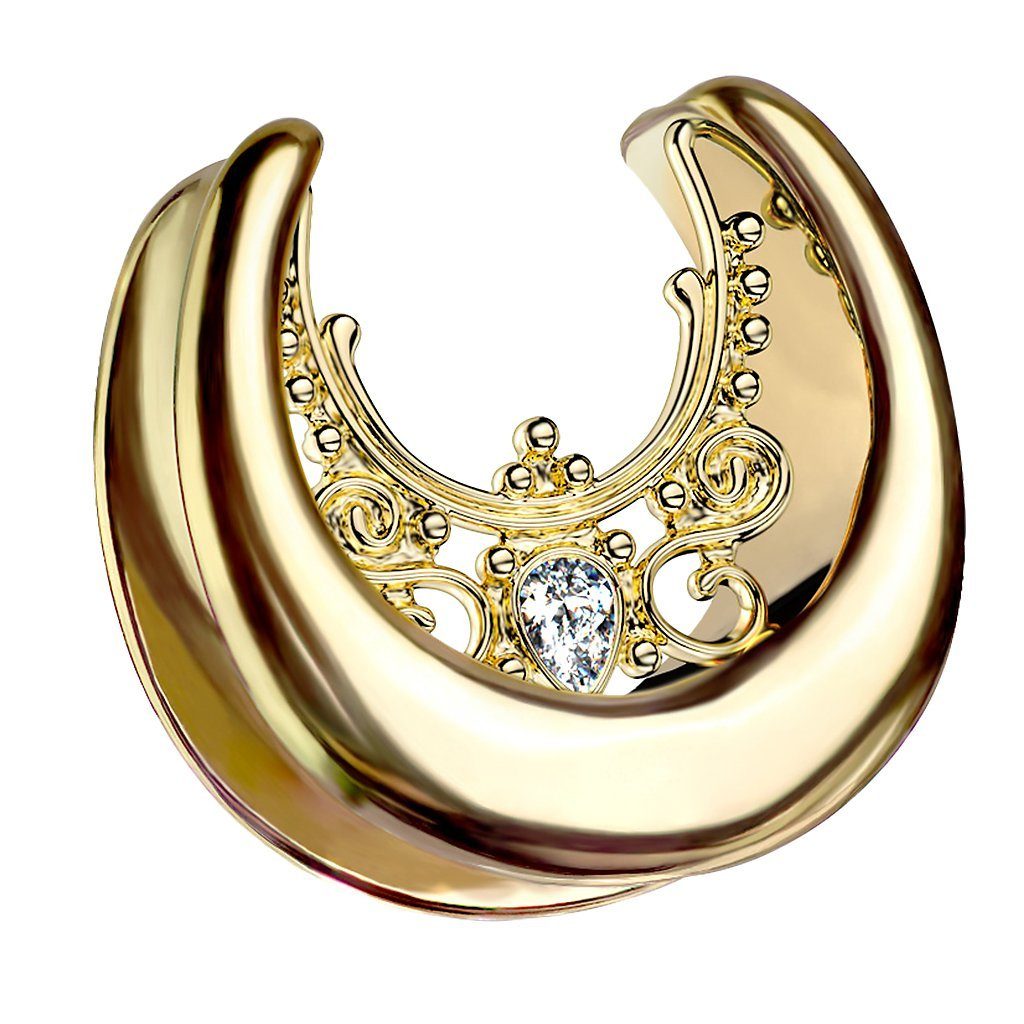 Dieser halbrunde Tribal Plug mit Kristallverzierung von Taffstyle vereint edles Design und hochwertige Verarbeitung in einem einzigartigen Ohrschmuckstück. Gefertigt aus Chirurgenstahl (316L), steht dieser Plug für erstklassige Qualität, Langlebigkeit und angenehmen Tragekomfort.