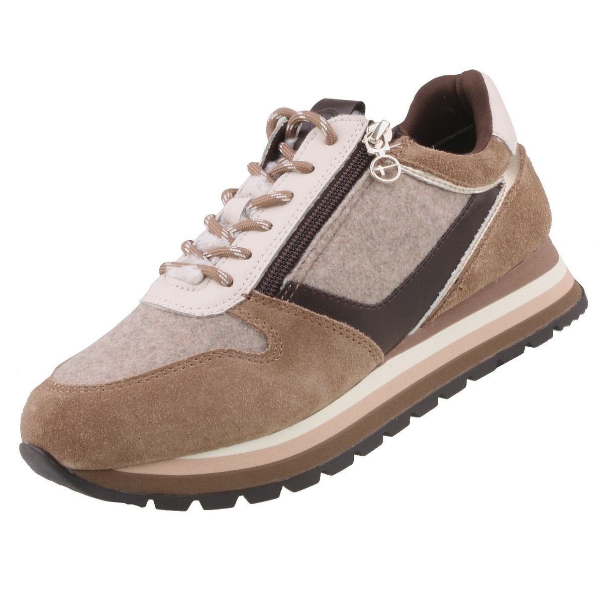 Hineinschlüpfen und den Komfort dieser tollen Sneaker aus Leder erleben. Akzente aus Filz und Synthetik geben dem Schnürer eine extrem coole Optik. Ein seitlich eingenähter Reißverschluss dient als Einstiegshilfe. Für ein perfektes Lauferlebnis sorgt die textile Innenausstattung mit gut gepolstertem und herausnehmbarem Fußbett. Als flexibel und besonders bequem erweist sich die Synthetik-Laufsohle mit 40 mm Plateau.