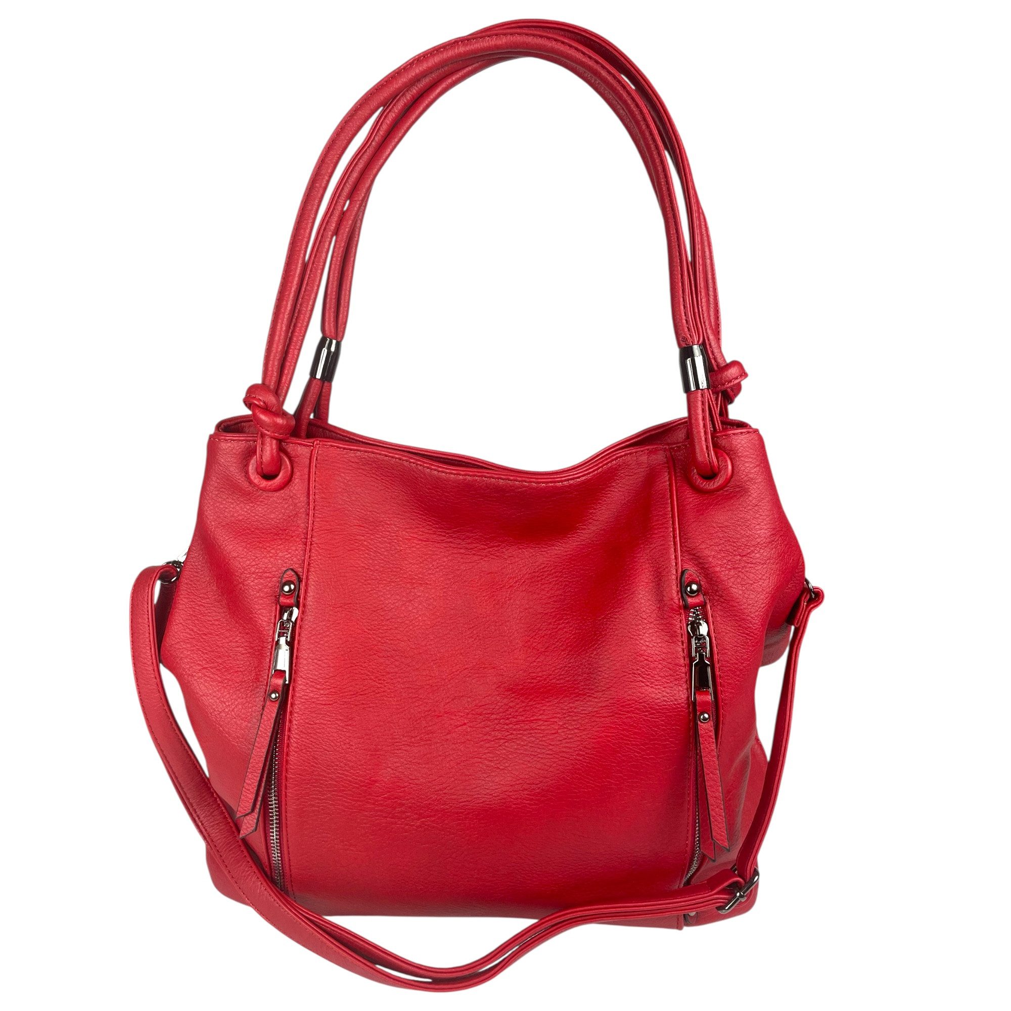 Die Schultertasche, auch bekannt als Umhängetasche, ist ein unverzichtbares Accessoire für jeden Anlass. Diese große Handtasche aus weichem Lederimitat verbindet modernes Design mit Funktionalität. Mit einem Reißverschluss und langen Tragegriffen kann sie bequem über der Schulter getragen werden. Darüber hinaus verfügt sie über einen zusätzlich abnehmbaren und verstellbaren Schultertrageriemen, der es ermöglicht, sie sportlich und leger zu tragen. Die Tasche ist einfarbig gehalten und besitzt kleine Fächer im Inneren und äußeren Bereich, um all deine Essentials sicher aufzubewahren. Beide Seiten lassen sich oben mittels Druckknopf verkleinern (siehe Bilder). Das sieht optisch sehr schön aus und Langfinger können nicht so leicht den Reißverschluss öffnen. Ob für den Alltag oder besondere Anlässe, diese Schultertasche ist ein vielseitiger Begleiter, der deinem Outfit eine stylische Note verleiht. Details: Maße: breit 37cm x hoch 30cm x tief 15cm | Henkel: 60cm lang | Schultertrageriemen: 130cm lang | Material: weiches Kunstleder (optisch kaum von echtem Leder zu unterscheiden) | Pflege: mit feuchtem Tuch abwischbar | Innenfutter: Stoffmix | Fächer innen: 2x großes Hauptfach, 2x Reißverschlussfach, 2x Einsteckfach | Fächer außen: Frontseite 2x Reißverschlussfach, Rückseite 1x Reißverschlussfach