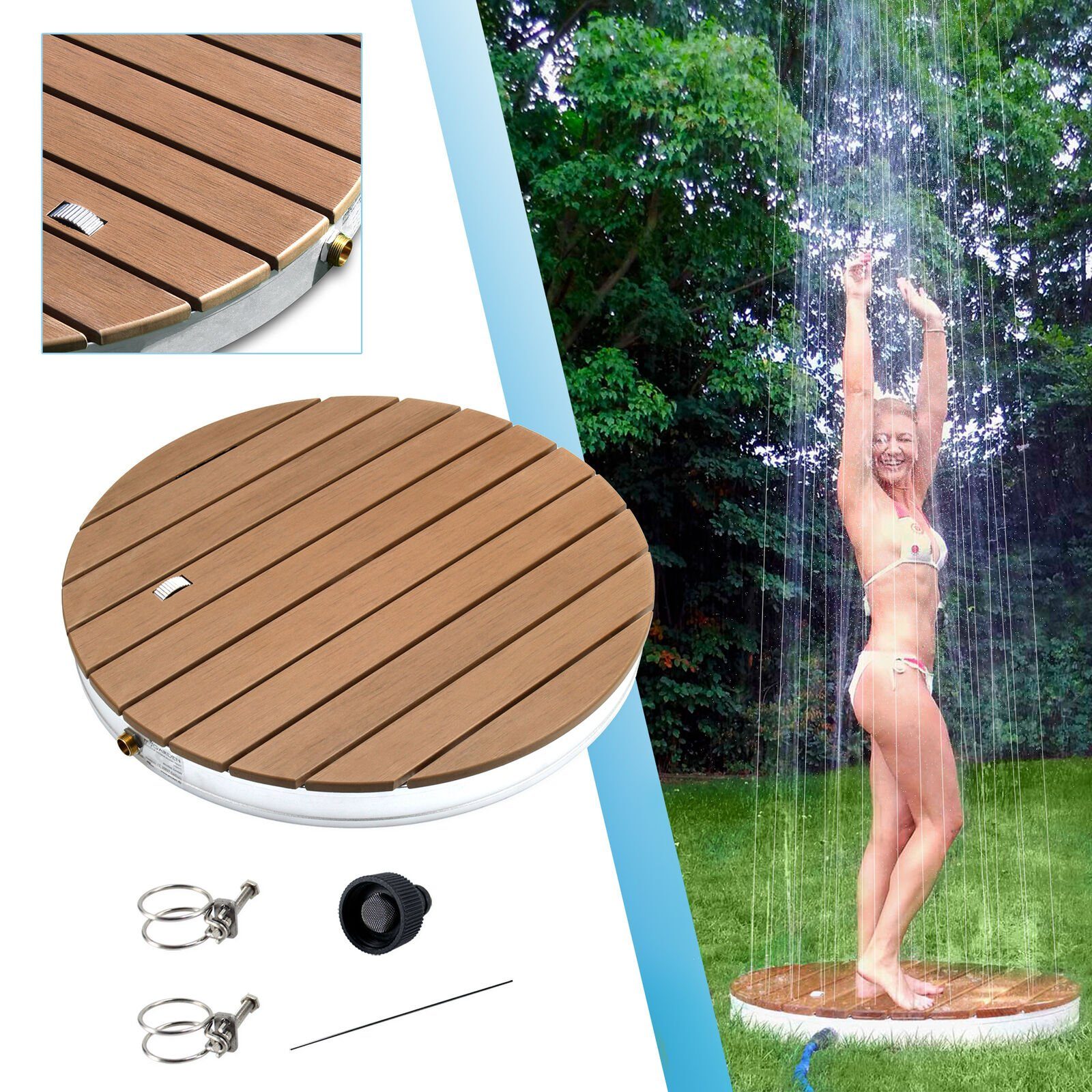 Die hochwertige @tec Gartendusche mit runder WPC-Bodenplatte bietet an heißen Sommertagen eine sofortige und wohltuende Erfrischung. Sie eignet sich hervorragend für Garten, Poolbereich, Terrasse, Sauna oder Camping und sorgt für erlebnisreichen Wasserspaß für Kinder, Erwachsene und Haustiere.